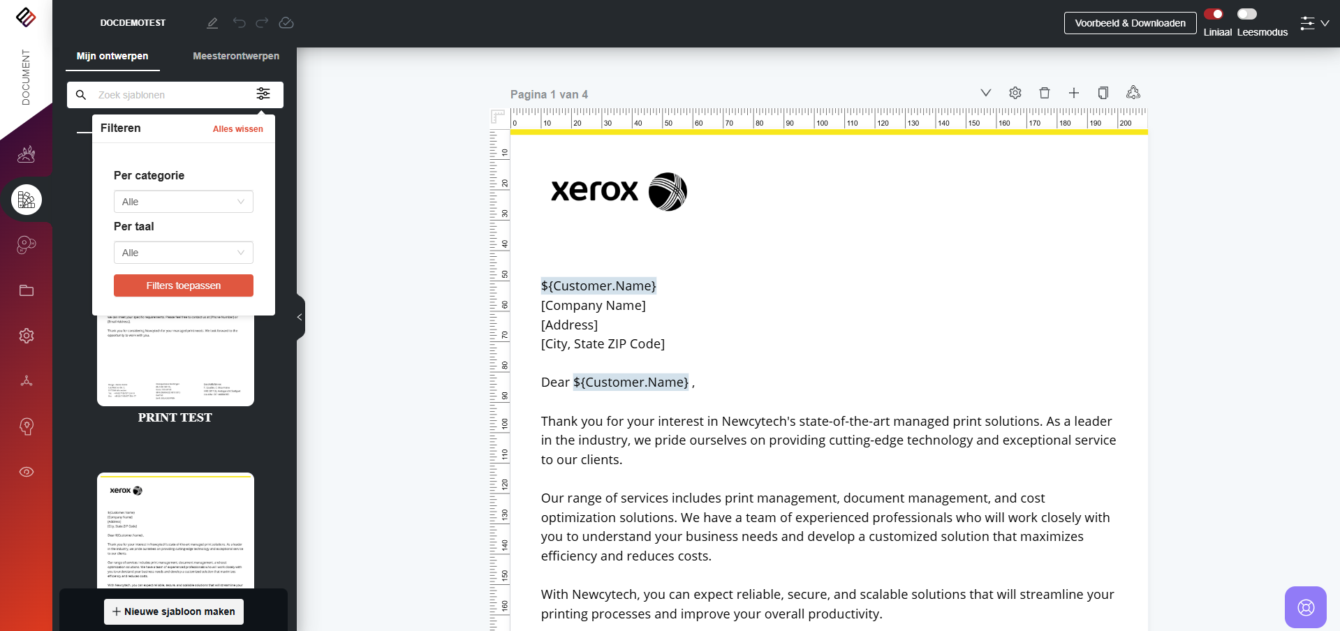 3. Gebruikers kunnen documentsjablonen filteren en zoeken op categorie en taal met behulp van de filteroptie.