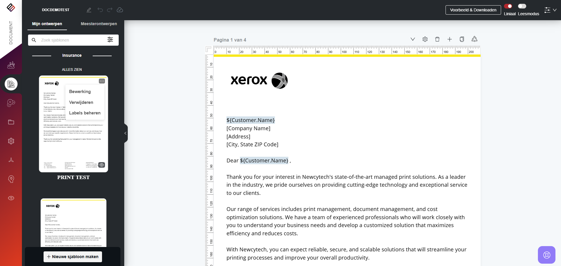 Gebruikers hebben de optie om herbruikbare pagina's of secties te maken binnen een documentsjabloon. Ze kunnen een heel document ontwerpen en het hergebruiken in een ander document, of ze kunnen specifieke secties ontwerpen, zoals headers, en deze ...