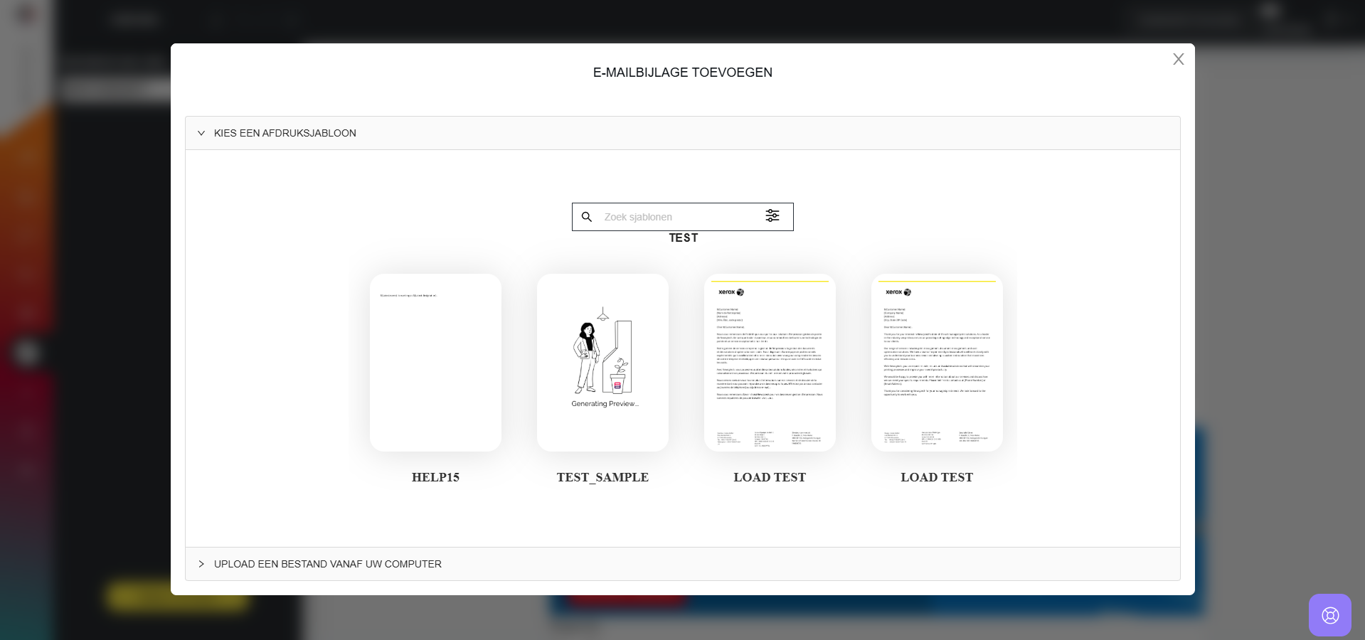 Gebruikers kunnen een documentsjabloon die beschikbaar is in het systeem toevoegen aan hun e-mail door de gewenste sjabloon te selecteren uit de lijst die wordt verstrekt.