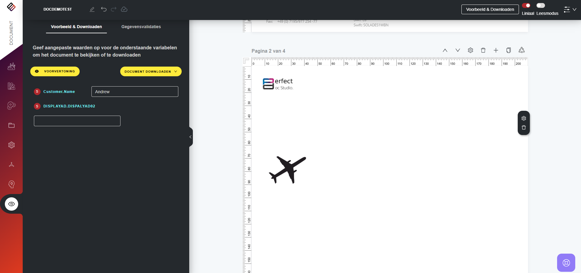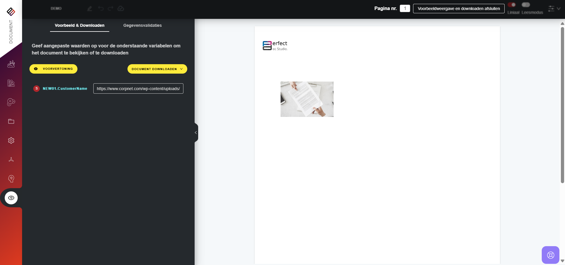 5. Ga naar het gedeelte 'Voorbeeld en downloaden' om een voorbeeld van het document te bekijken of het te downloaden. Zorg er daarbij voor dat de afbeeldingen dynamisch worden aangepast op basis van de opgegeven koppelingen.