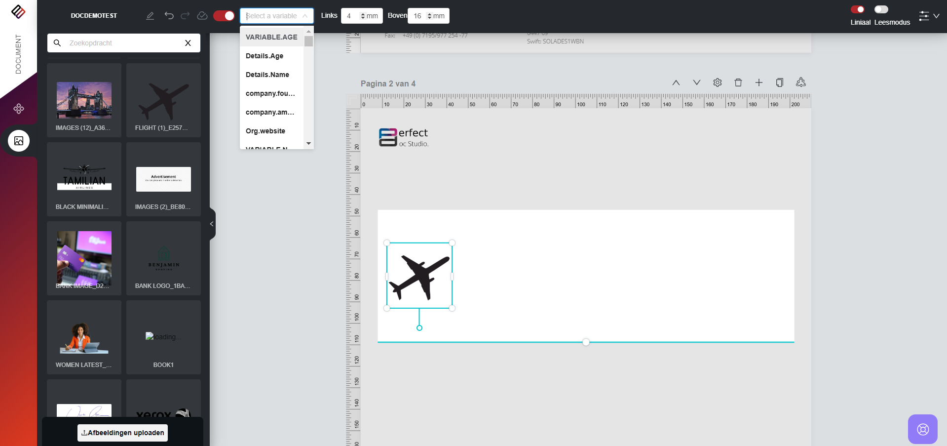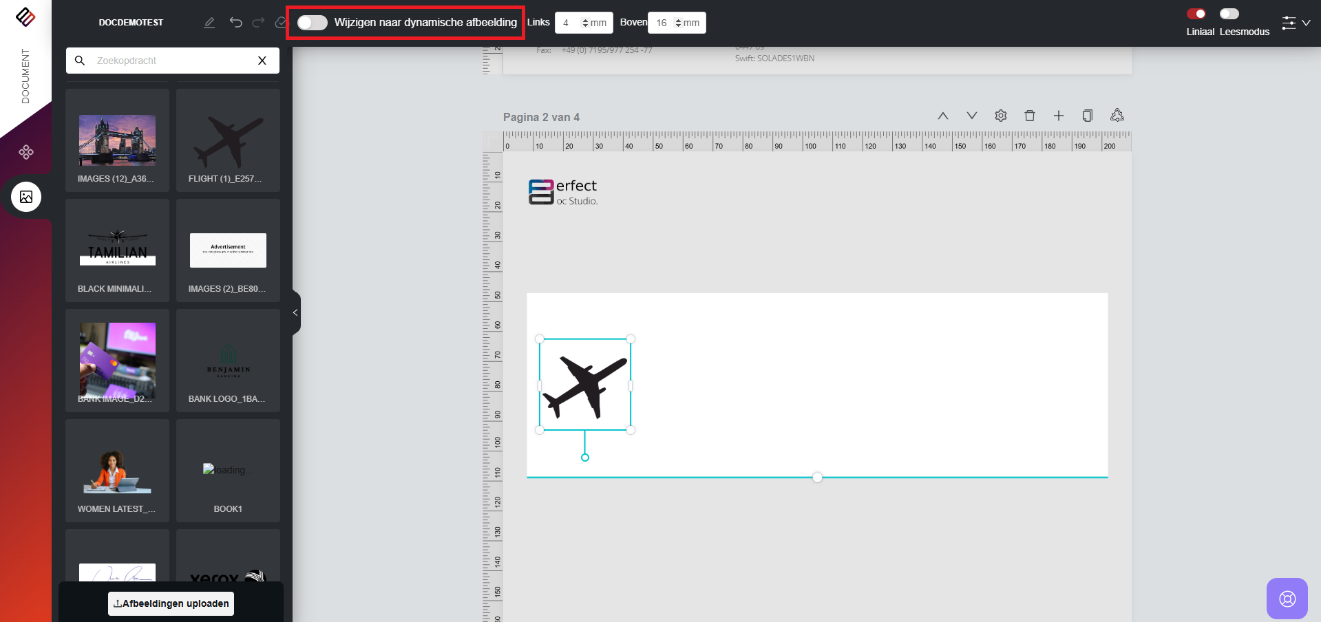 In onze Perfect DocStudio hebben gebruikers de mogelijkheid om dynamische afbeeldingen in hun creaties op te nemen. Deze afbeeldingen kunnen automatisch worden bijgewerkt door ze te koppelen aan specifieke variabelen. Dit betekent dat de visuele inhoud in documenten kan veranderen op basis van bepaalde voorwaarden of gegevensinvoer. Een bank kan bijvoorbeeld jaarlijkse financiële overzichtsdocumenten naar zijn klanten sturen, waarbij de omslagafbeelding dynamisch wordt bijgewerkt om de meest gebruikte bankservice van elke klant gedurende het jaar weer te geven.