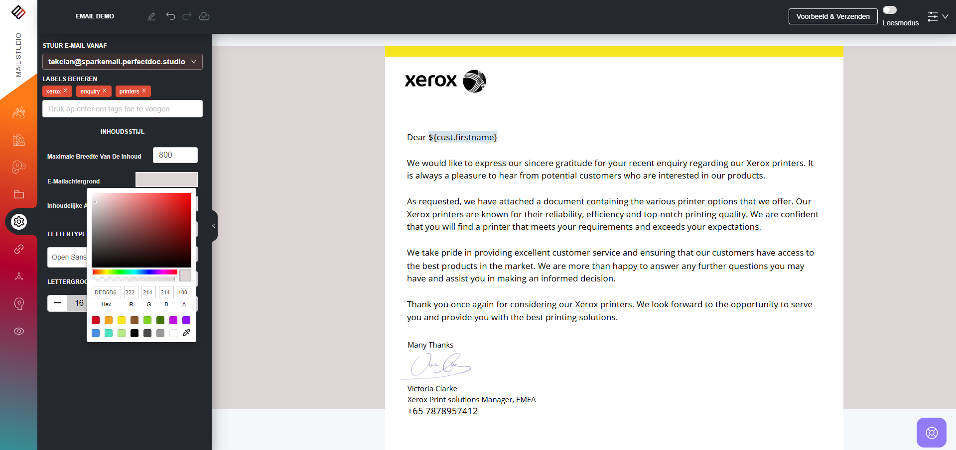 E-mailachtergrond: Stel een specifieke kleur in voor de algemene e-mailachtergrond, los van het inhoudsgebied.