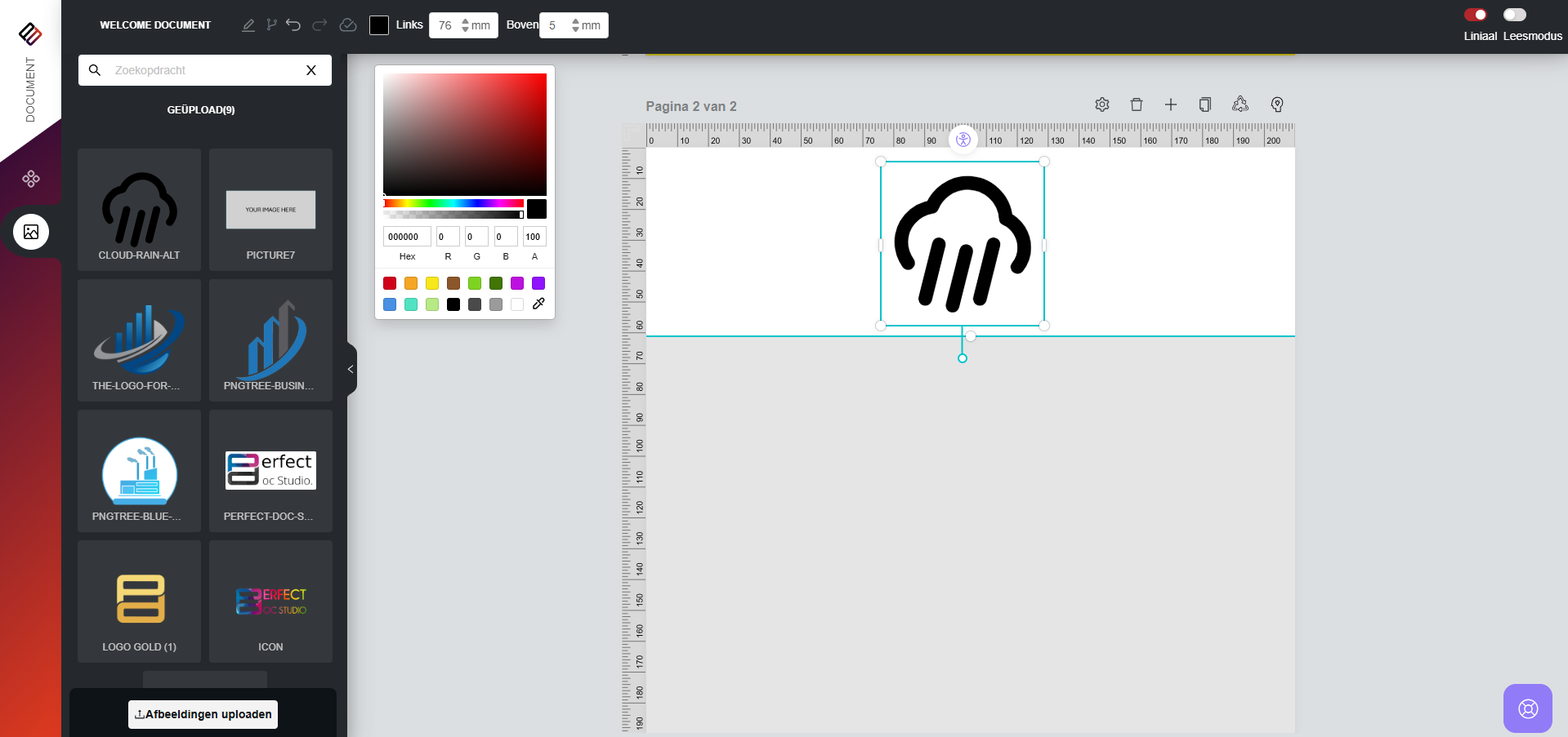 Nadat u een SVG-afbeelding hebt geüpload naar het ontwerpgebied van een documentsjabloon in Perfect Doc Studio, kunt u de kleuren eenvoudig aanpassen aan de huisstijl van uw organisatie.