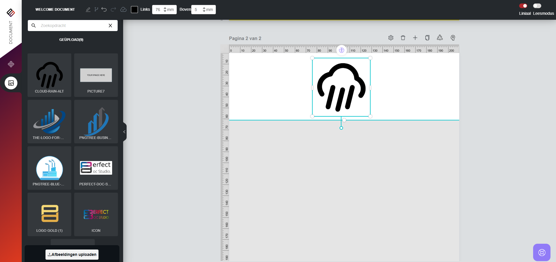 Om een afbeelding in het ontwerp van uw document in te voegen of te uploaden, volgt u de onderstaande instructies: