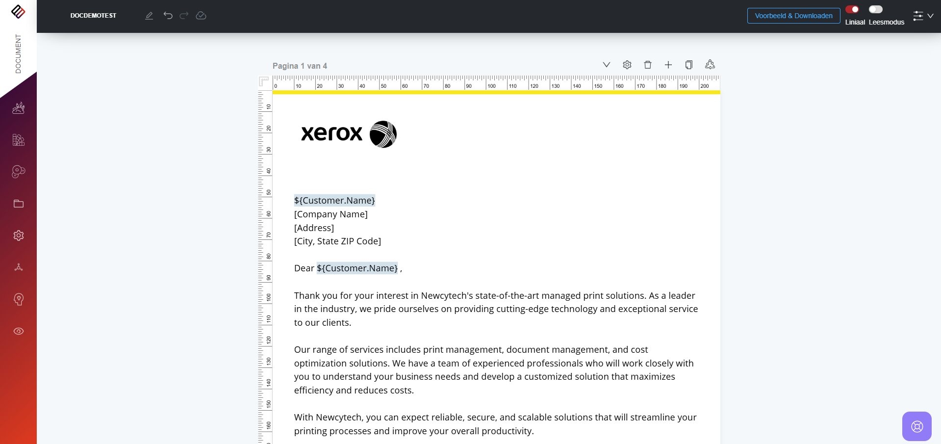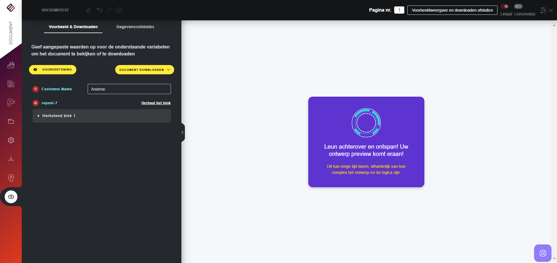 Als alternatief vindt u in de rechterbovenhoek van het ontwerpgebied een knop "Preview & Download". Als u hierop klikt, kunt u ook een preview van het document bekijken.