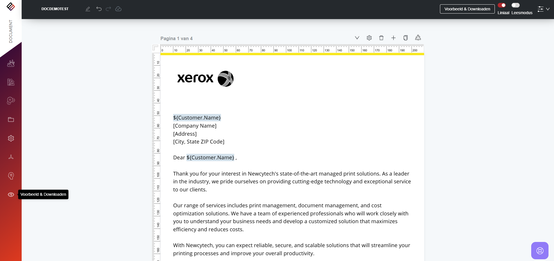 Om een voorbeeld te bekijken, klikt u eenvoudig op de knop 'Voorbeeld' om het huidige document te bekijken.