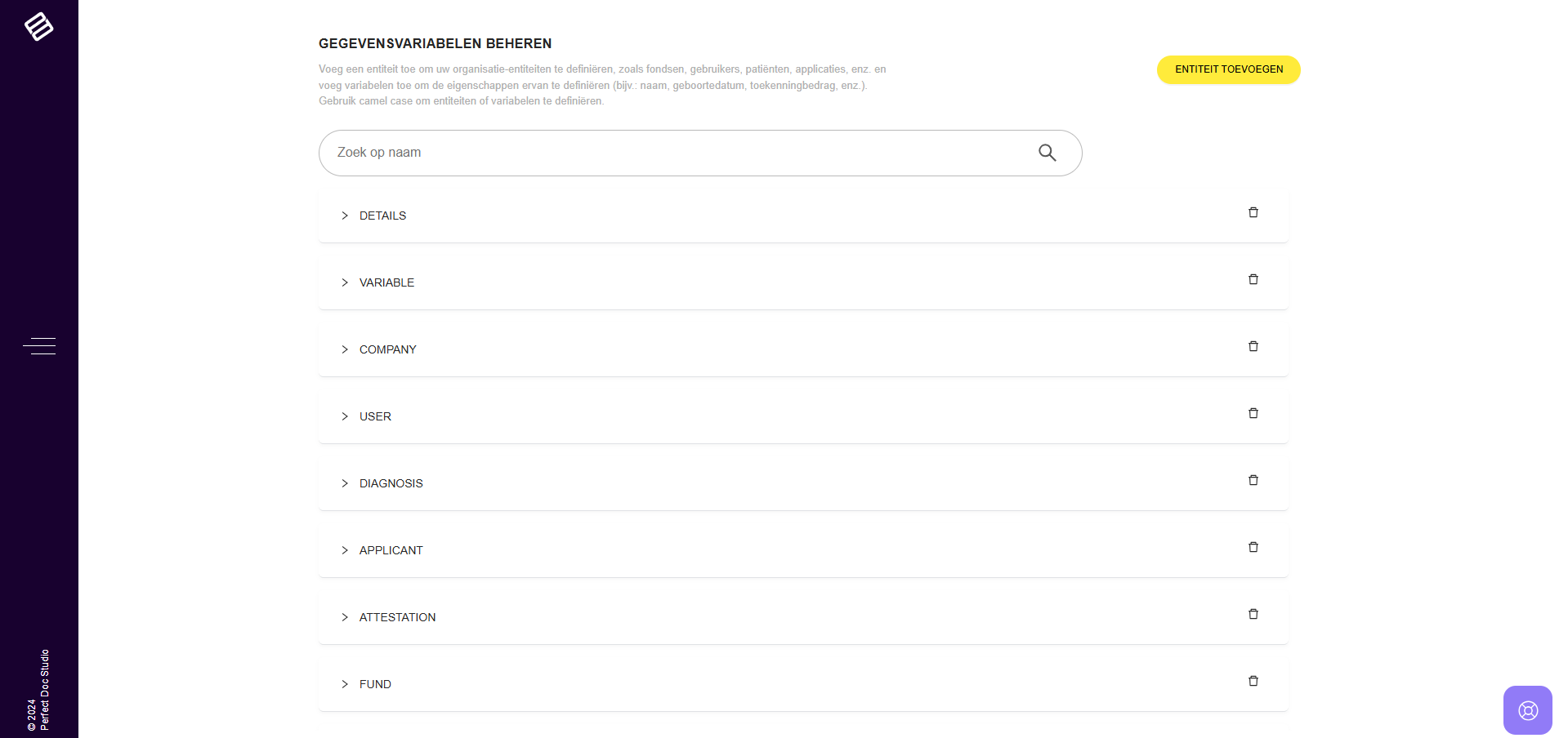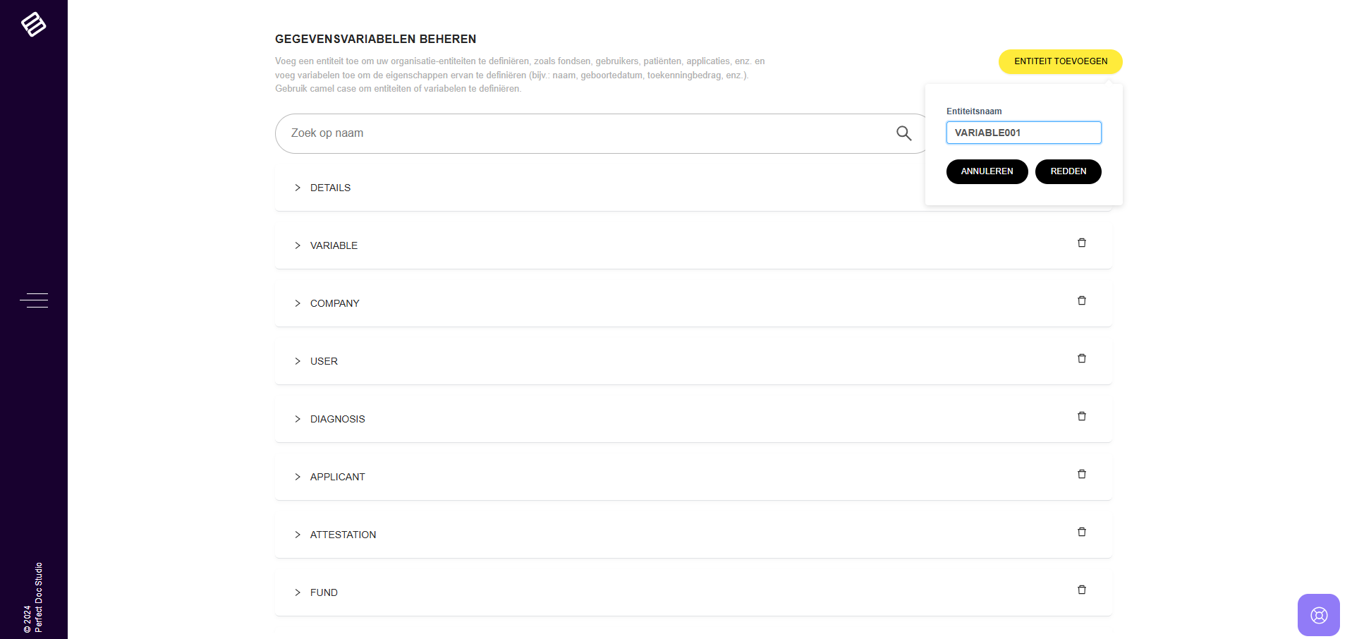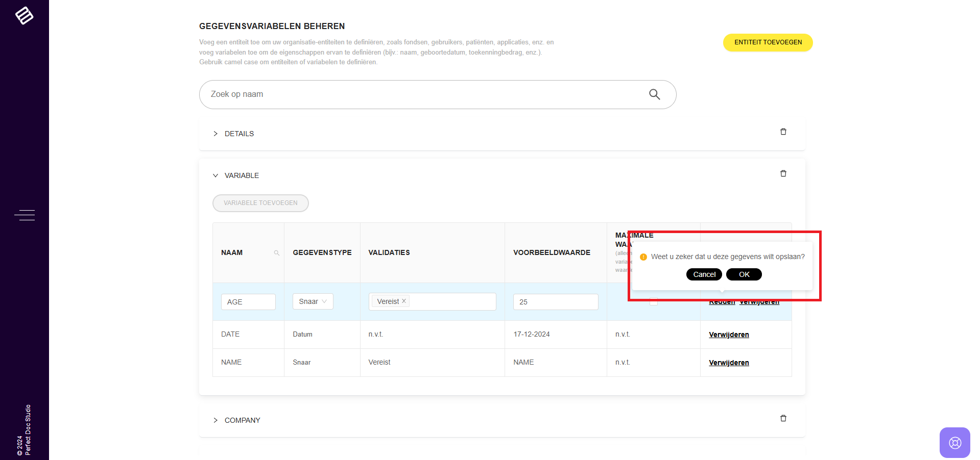 In Perfect Doc Studio worden variabelen op globaal niveau beheerd, zoals wordt gedemonstreerd in de bijbehorende video. Het systeem bevat entiteiten die variabelen huisvesten, en definieert alle relevante datavariabelen voor uw bedrijf. Dit zorgt ...