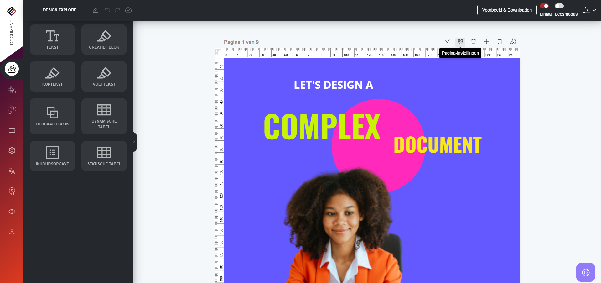 2. Er verschijnt een menu aan de linkerkant van de pagina, met verschillende pagina-instellingen.