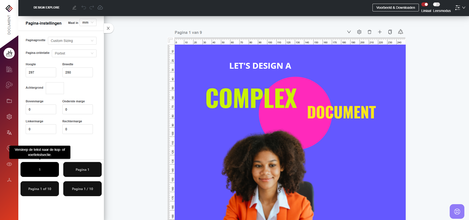 Om een afbeelding in het ontwerp van uw document in te voegen of te uploaden, volgt u de onderstaande instructies: 1. Selecteer in het menu aan de linkerkant de optie "Laten we ontwerpen". 2. Zoek en selecteer in deze sectie de functie 'Creatief ...
