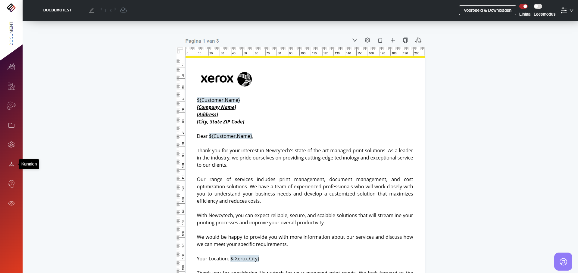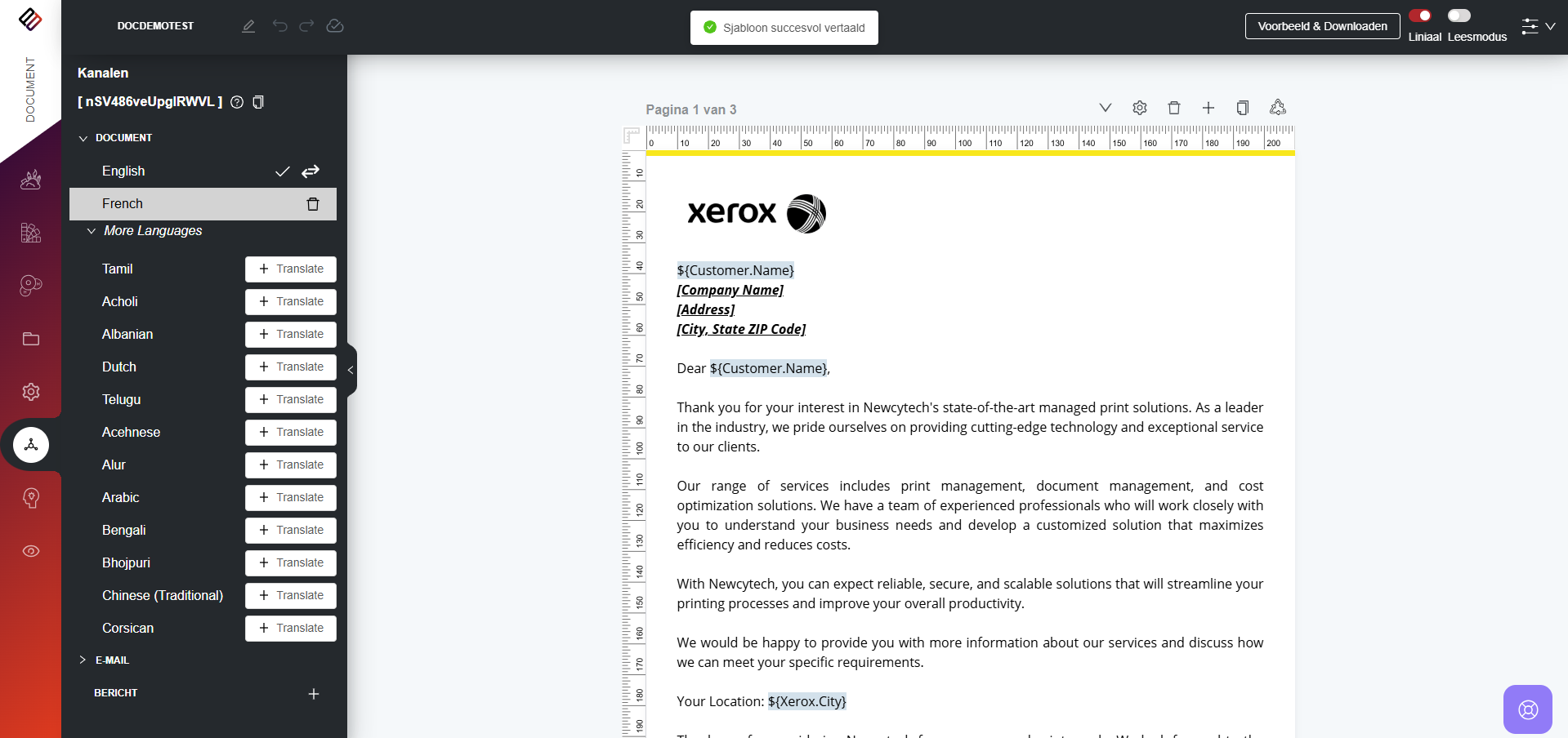 Let op: Houd er rekening mee dat het gegenereerde document rechtstreeks aan de originele sjabloon wordt gekoppeld en in hetzelfde kanaal wordt opgeslagen, waardoor sjablonen gemakkelijk toegankelijk en op te halen zijn voor toekomstig gebruik.