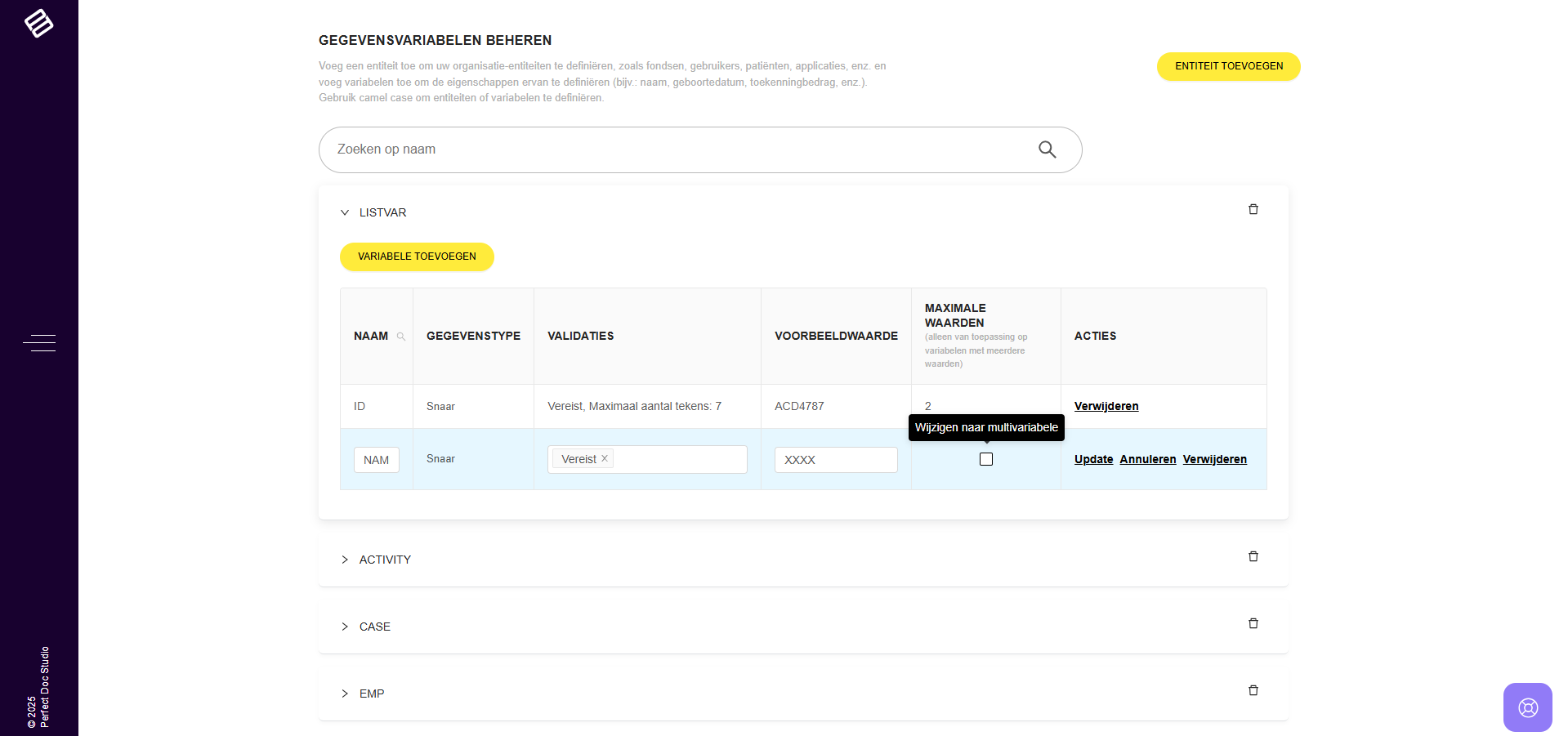 In Perfect Doc Studio verwijst een lijstvariabele naar een variabele die meerdere waarden bevat.