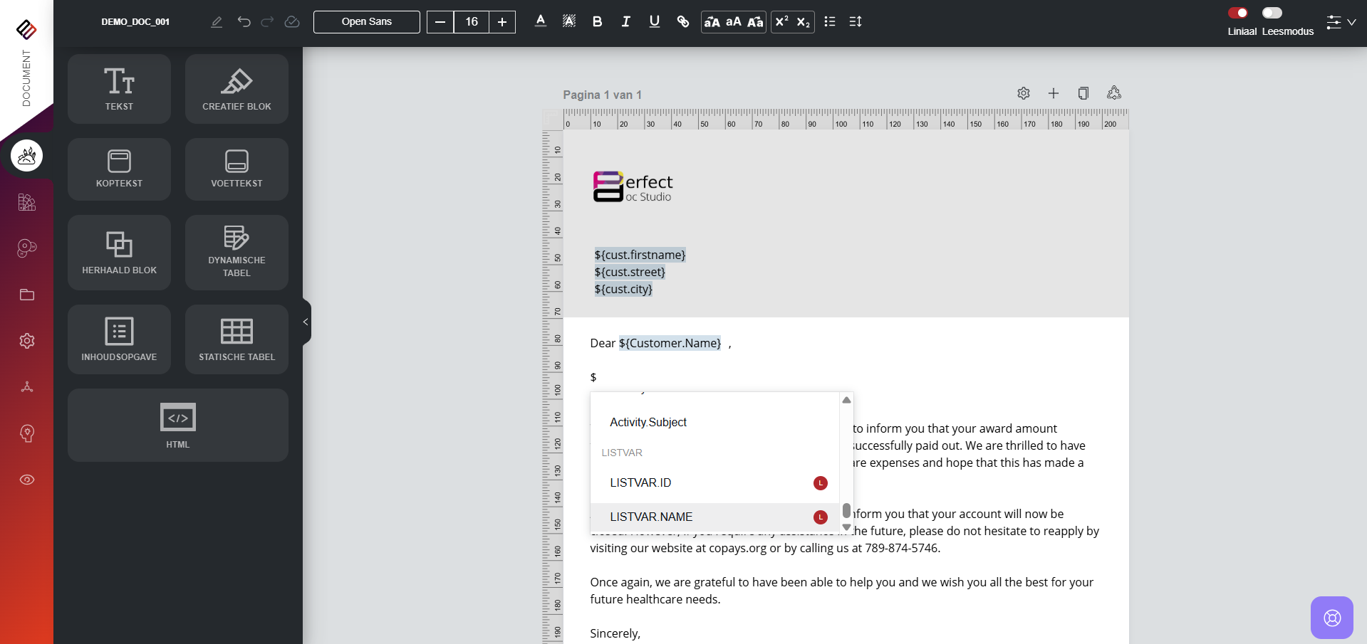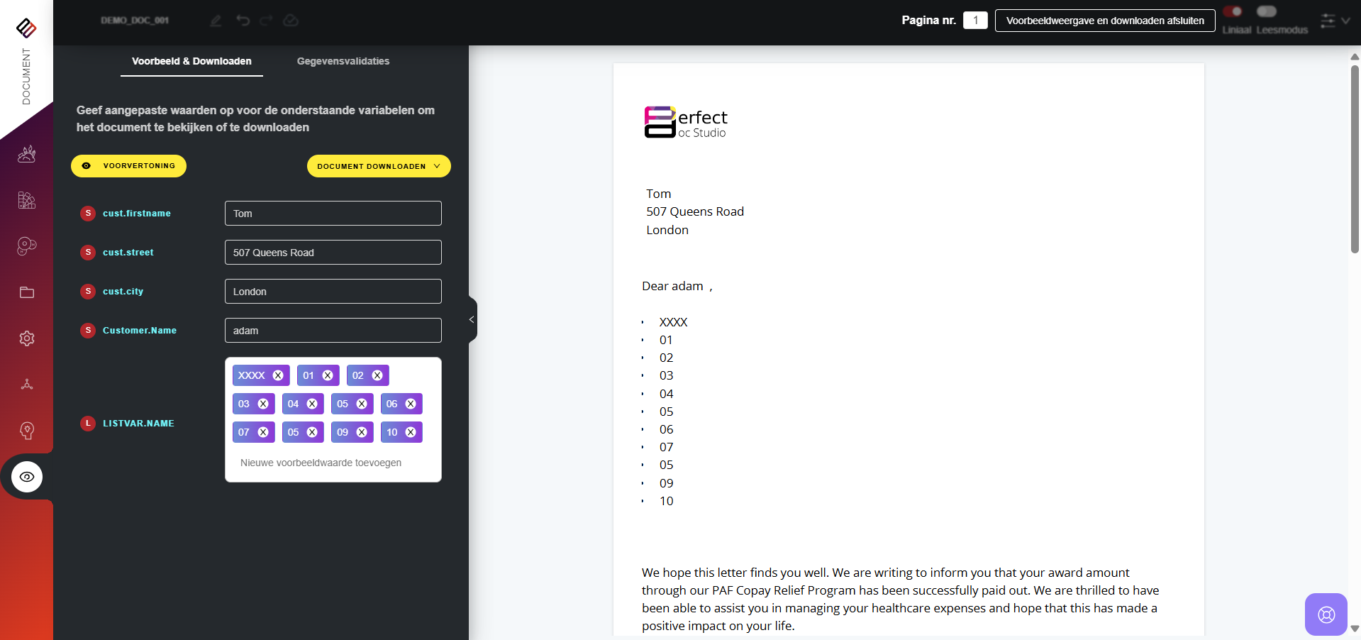 In Perfect Doc Studio worden variabelen op globaal niveau beheerd, zoals wordt gedemonstreerd in de bijbehorende video. Het systeem bevat entiteiten die variabelen huisvesten, en definieert alle relevante datavariabelen voor uw bedrijf. Dit zorgt ...