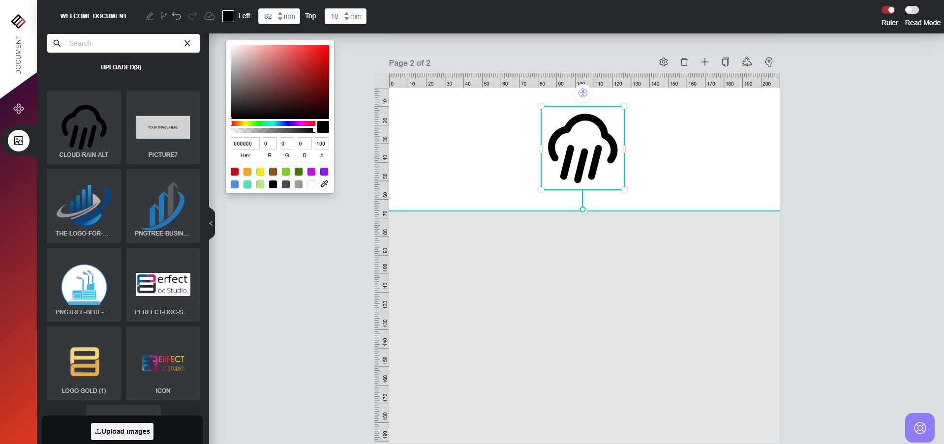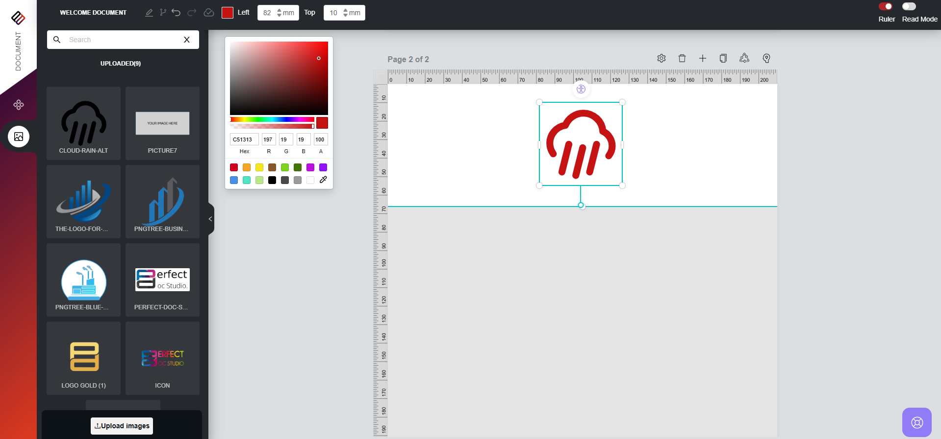 After uploading an SVG image into the design area of a document template in Perfect Doc Studio, you can easily adjust its colors to align with your organization's branding.