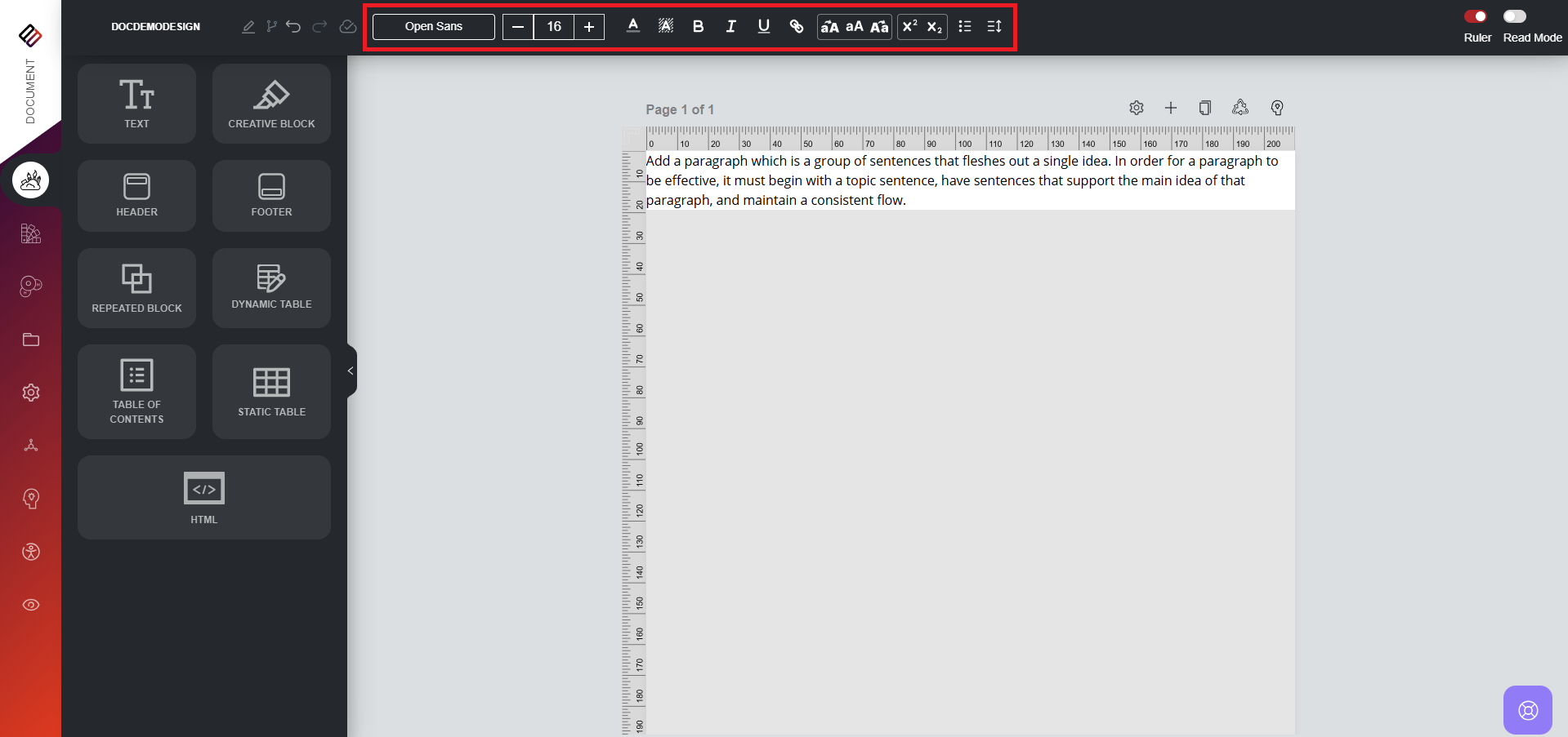 5. Use the text editor options available in the top bar to further style the content.