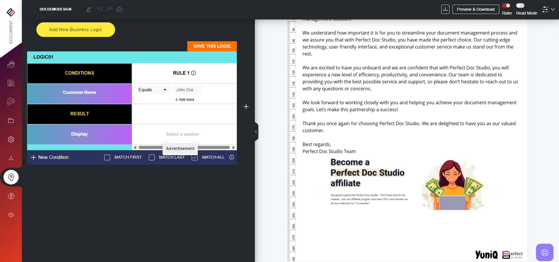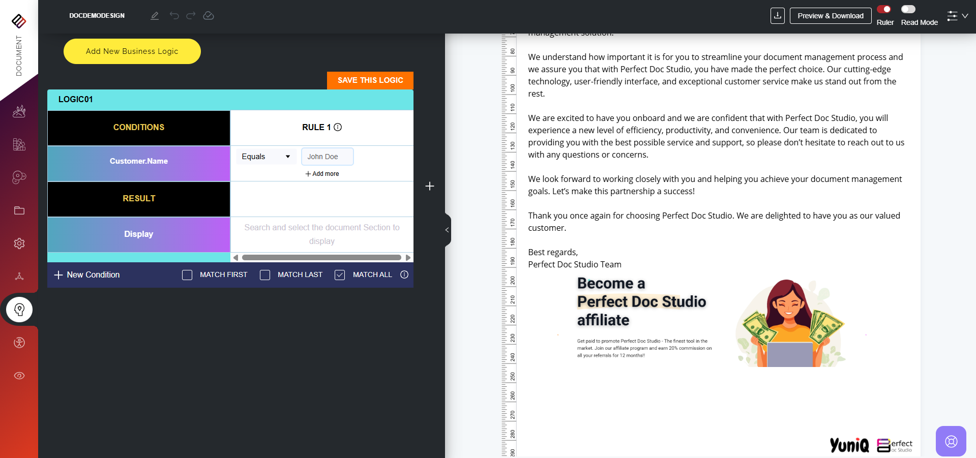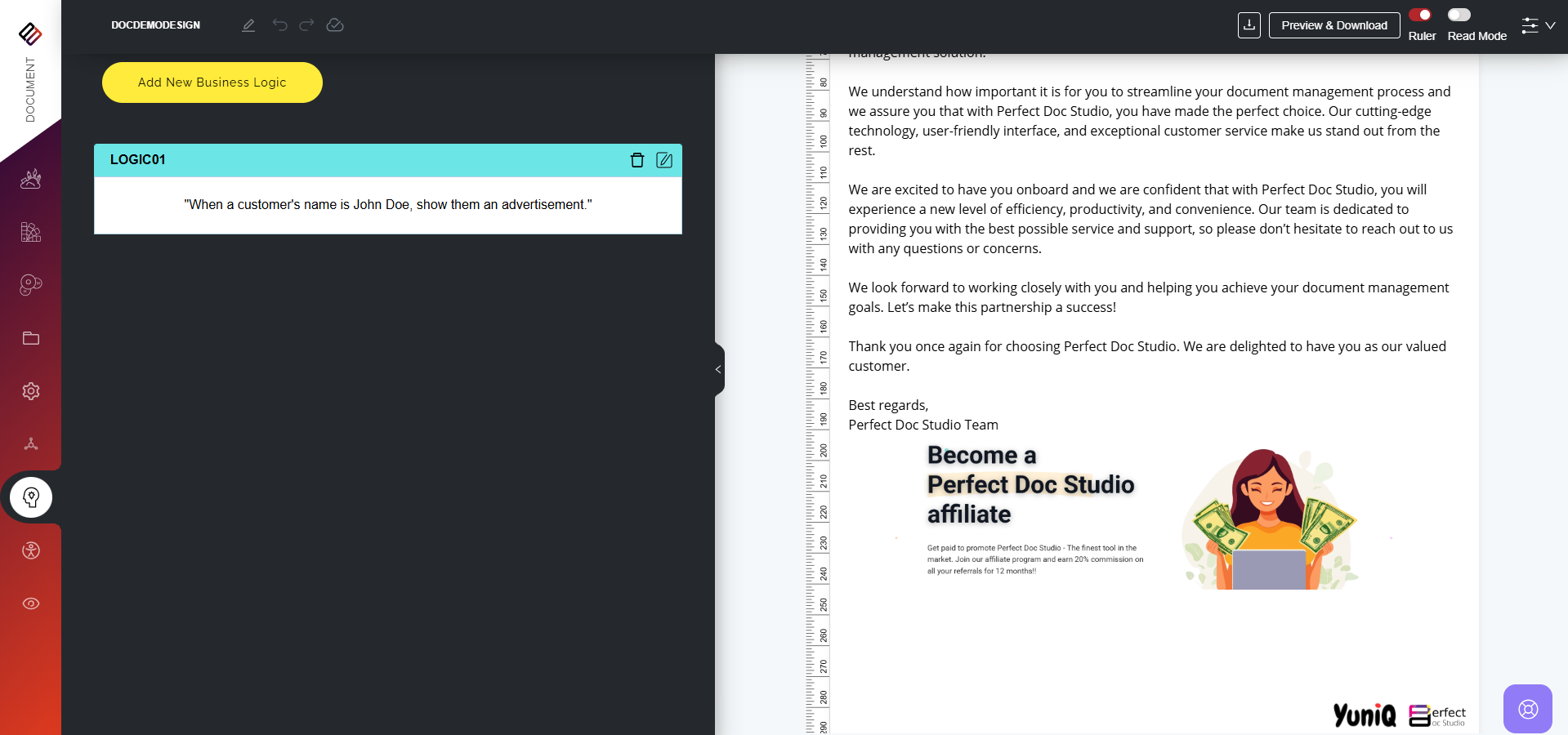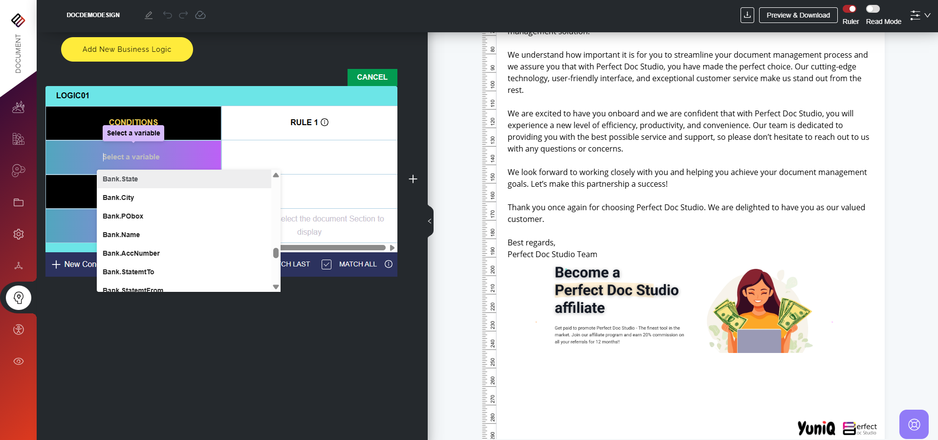 Business Logic refers to the set of rules and conditions that determine how information is displayed, structured, or processed within a document. Instead of generating static, one-size-fits-all communications, business logic allows documents to adapt ...