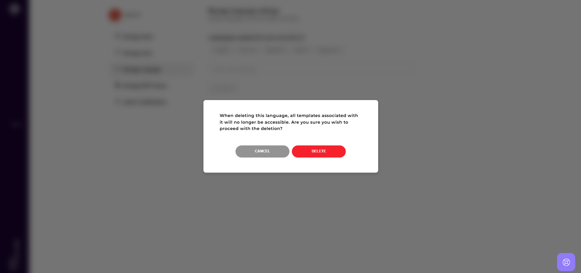 Warning: Removing a language from the system will permanently delete all templates created in that language, regardless of the team they belong to.