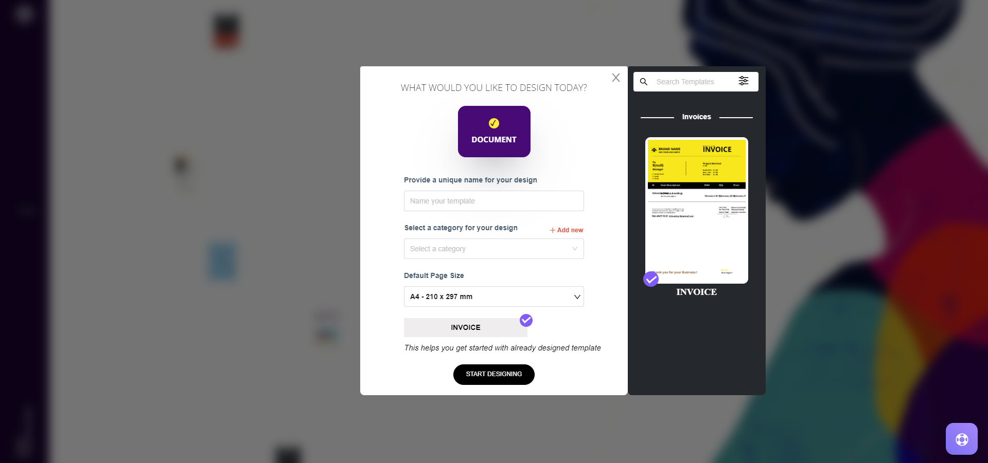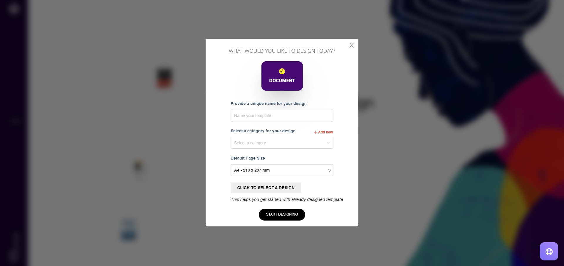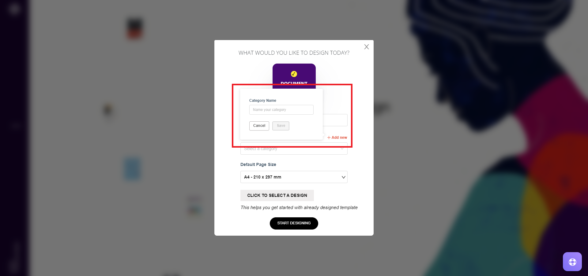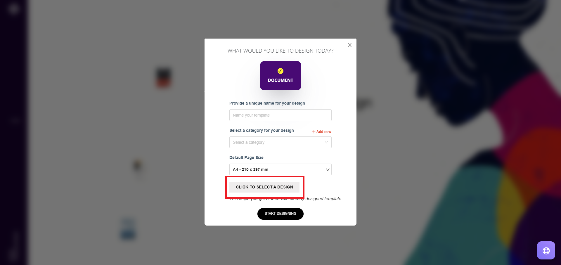 Follow these steps: 1. Click the "Start Designing" button on the home