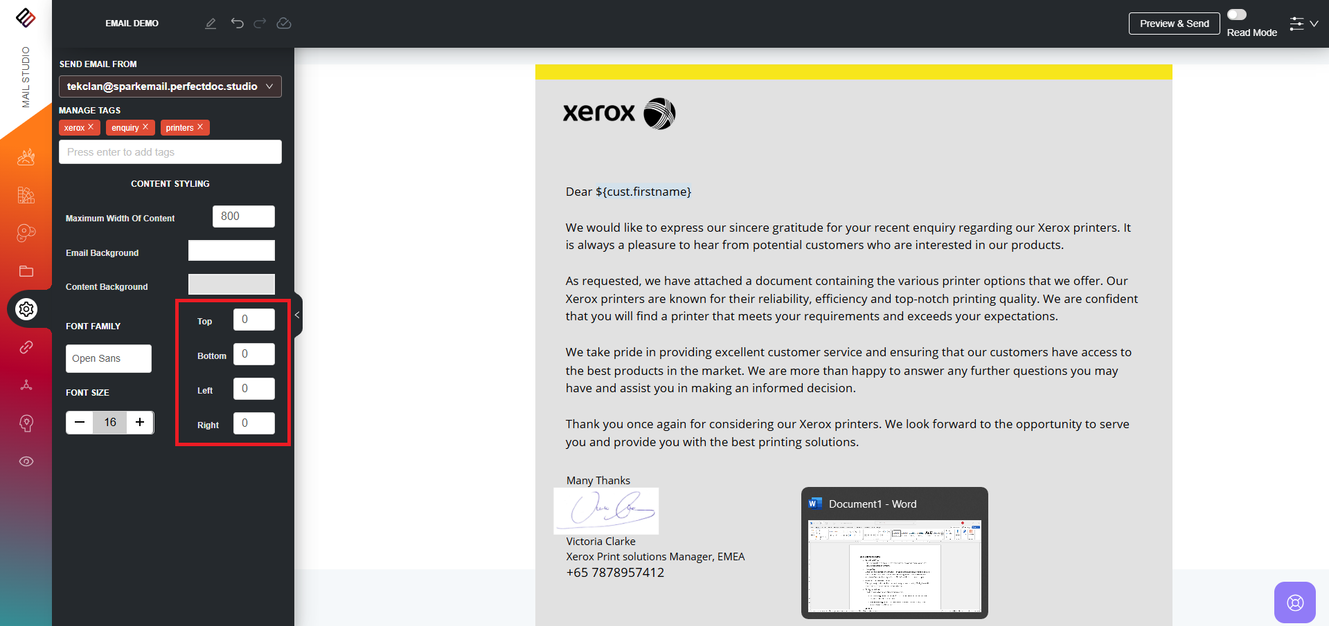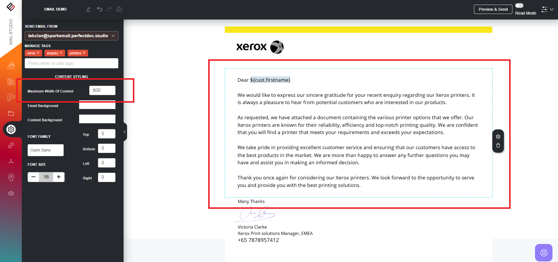 This option adjusts the width of the email design you are creating. Modify the width based on your requirements for optimal display.