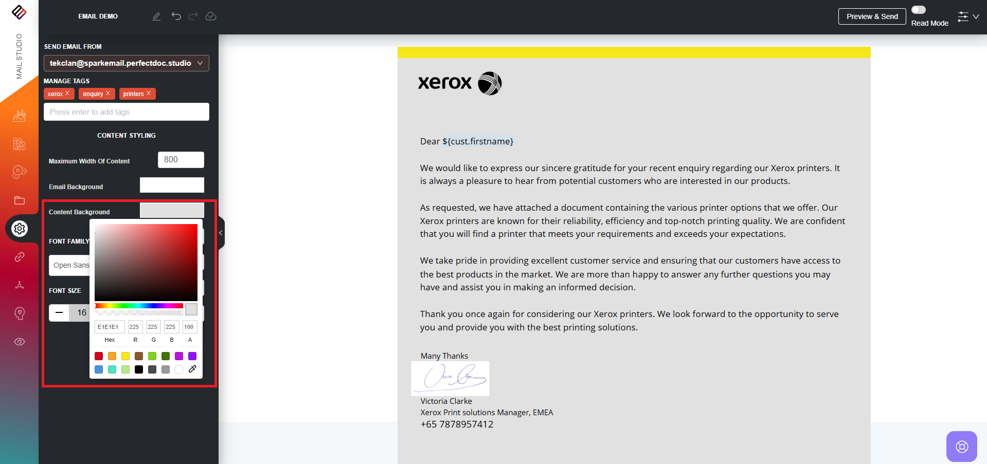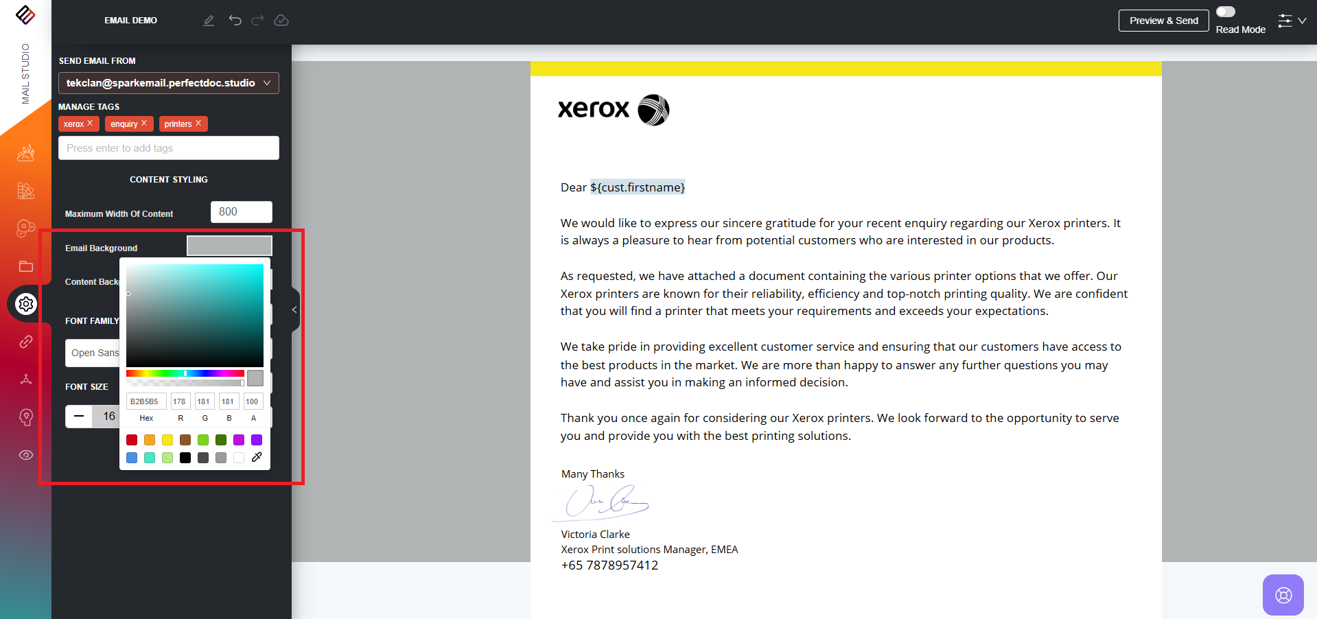 Email Background: Set a specific color for the overall email background, separate from the content area.