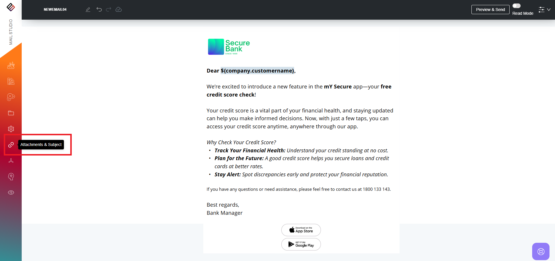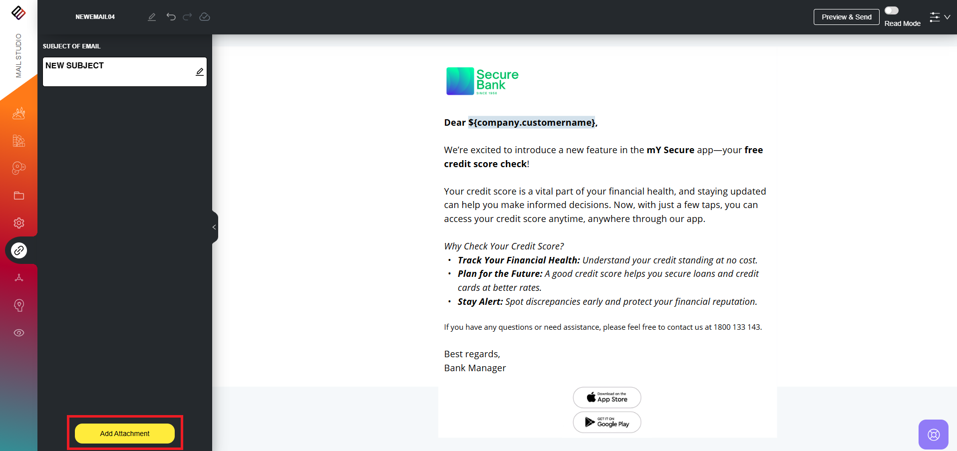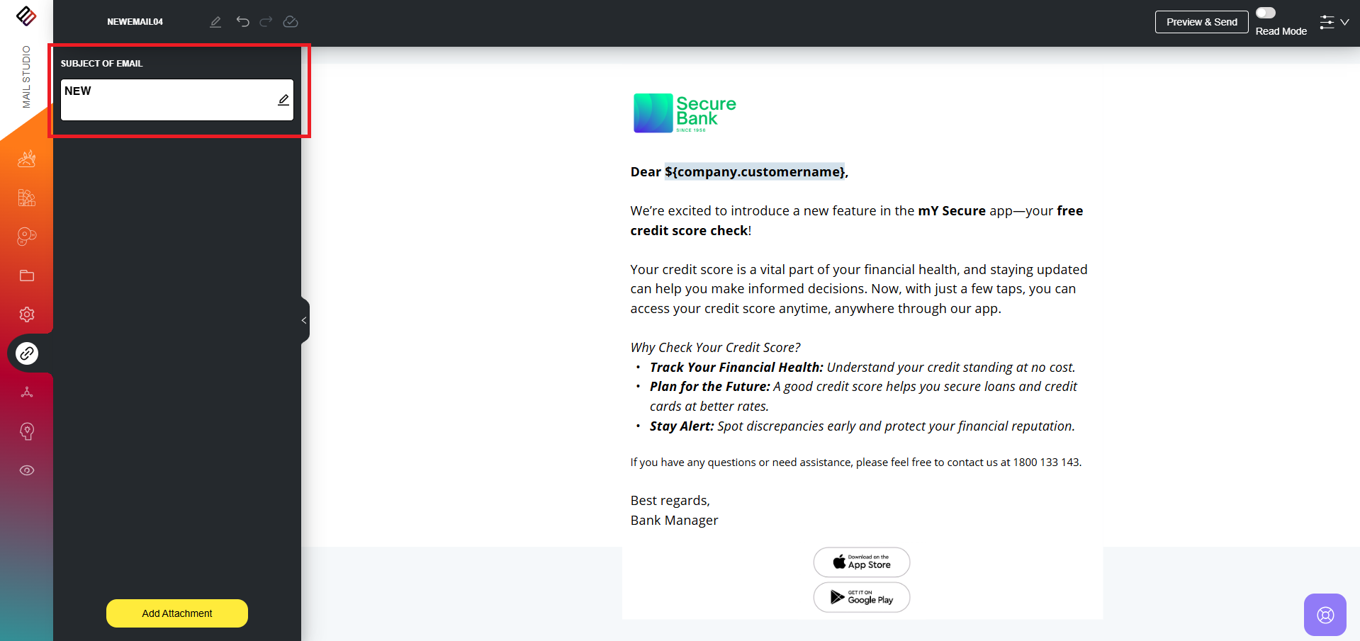 Users can set the subject of the email while creating the email template. However, if they wish to edit the subject line later, this can be done through the "Attachments & Subject" menu.