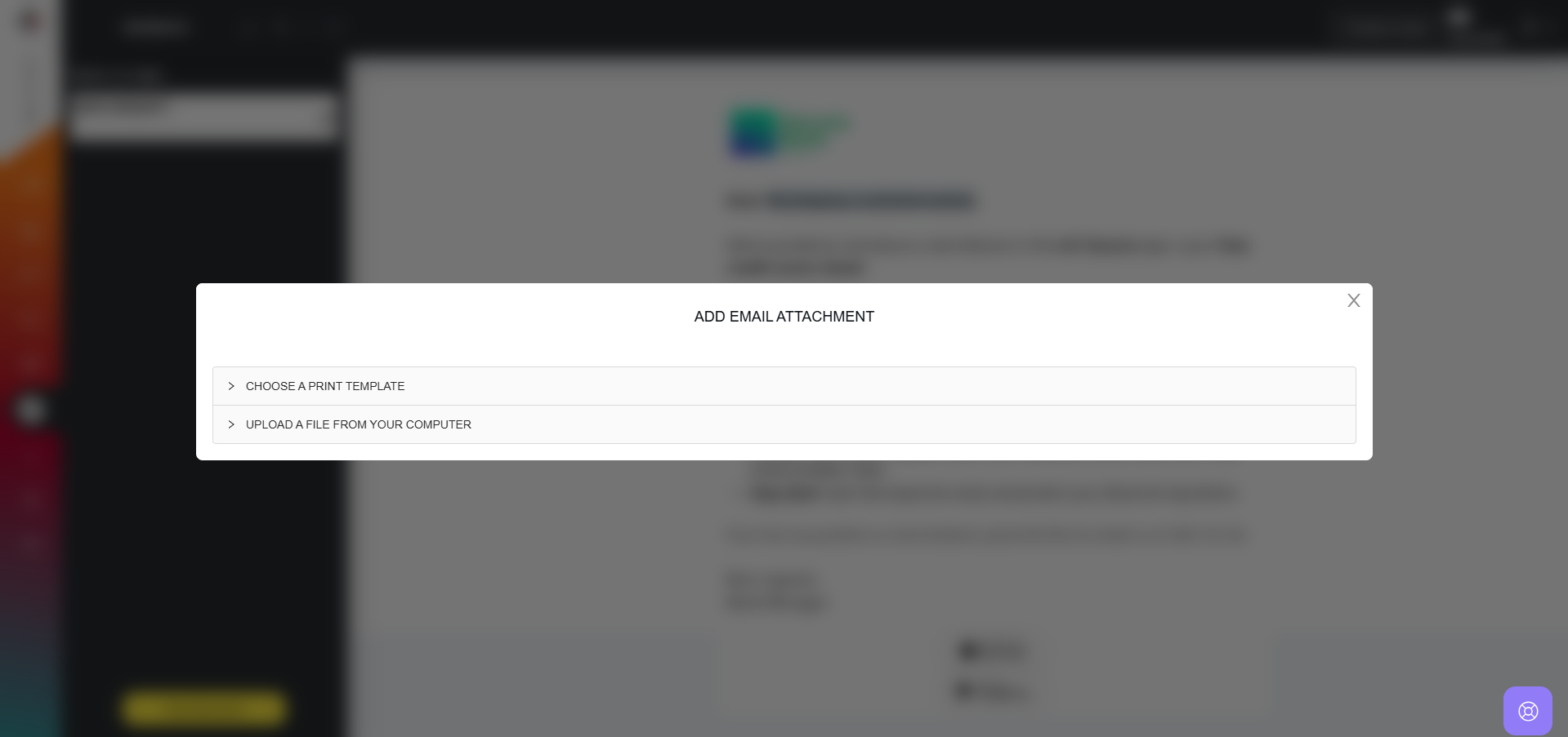 Users can attach a document template available within the system to their email by selecting the desired template from the list