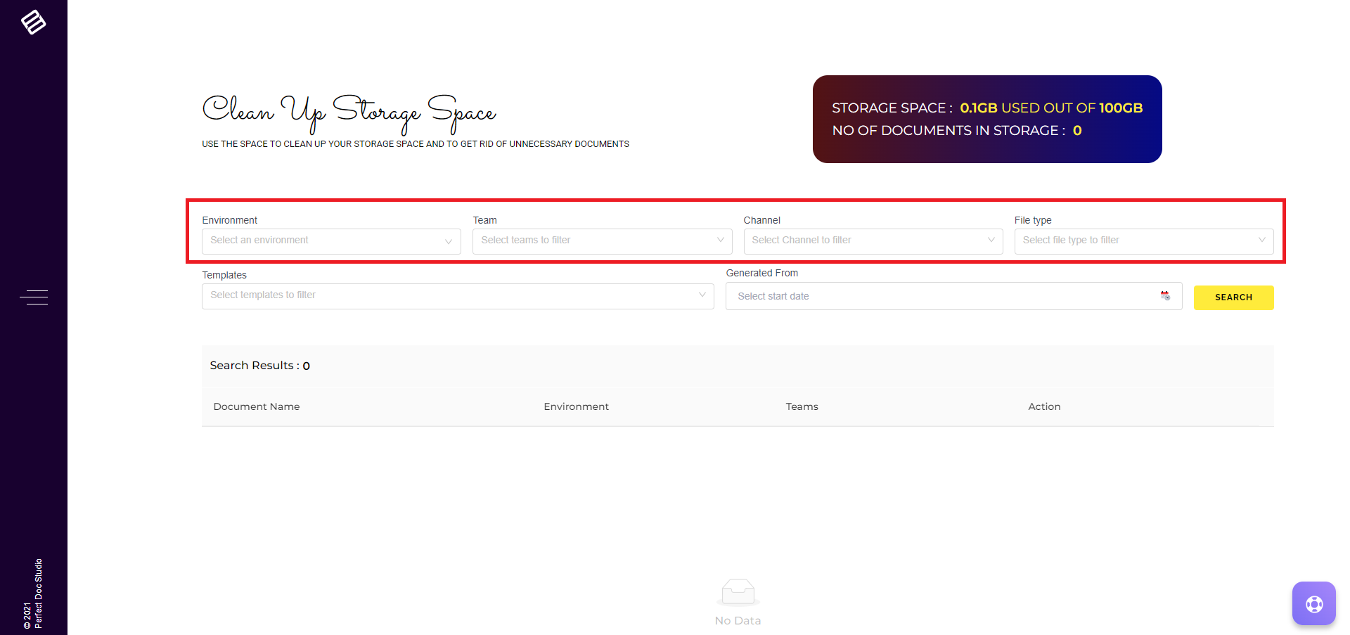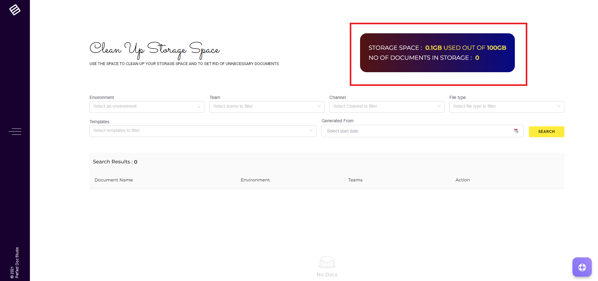 2. On the landing page, you'll find details regarding available storage, exhausted storage, and the number of generated documents based on your subscription plan.