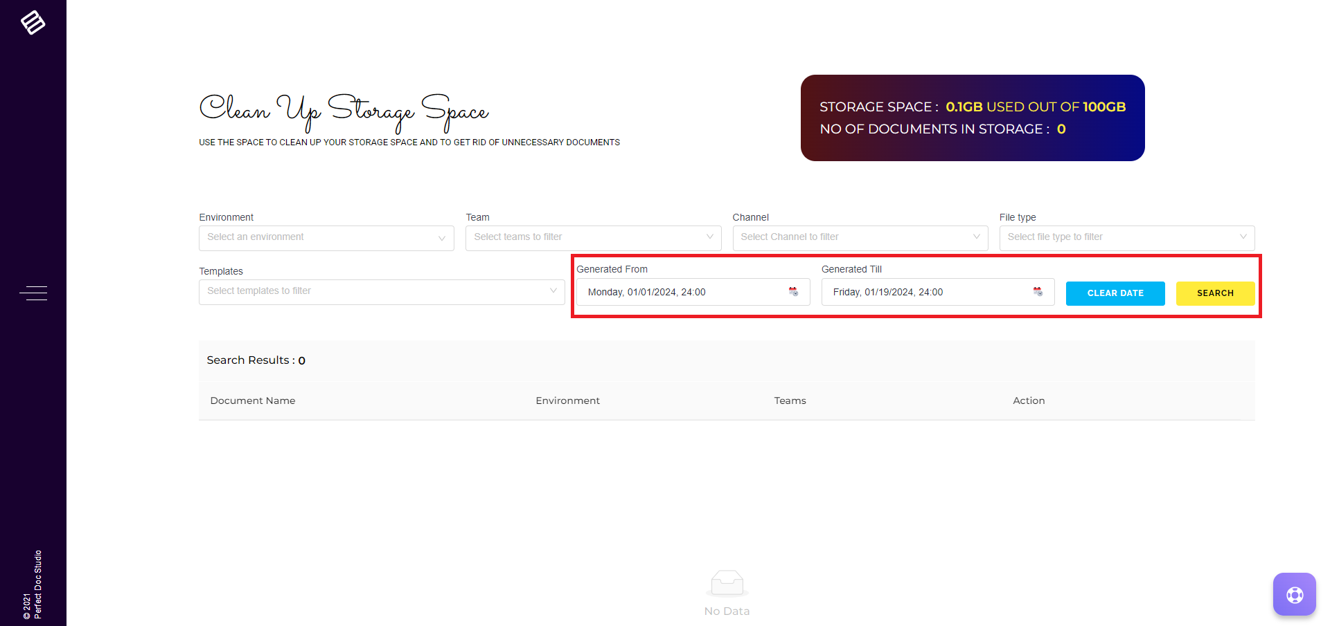 4. Additionally, you can clean documents generated within a particular date range.