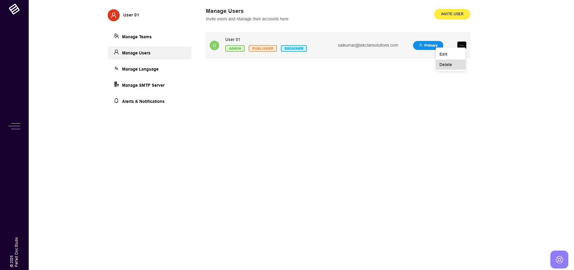 Team management in Perfect Doc Studio is simple and efficient. You can create teams based on the subscription plan you have selected. Team Creation: 1. Click on the "Admin Configurations" section in the left-hand menu. Note: Please note that only ...