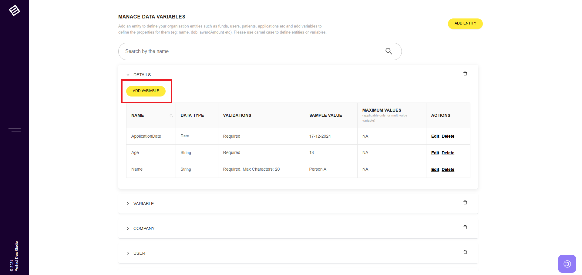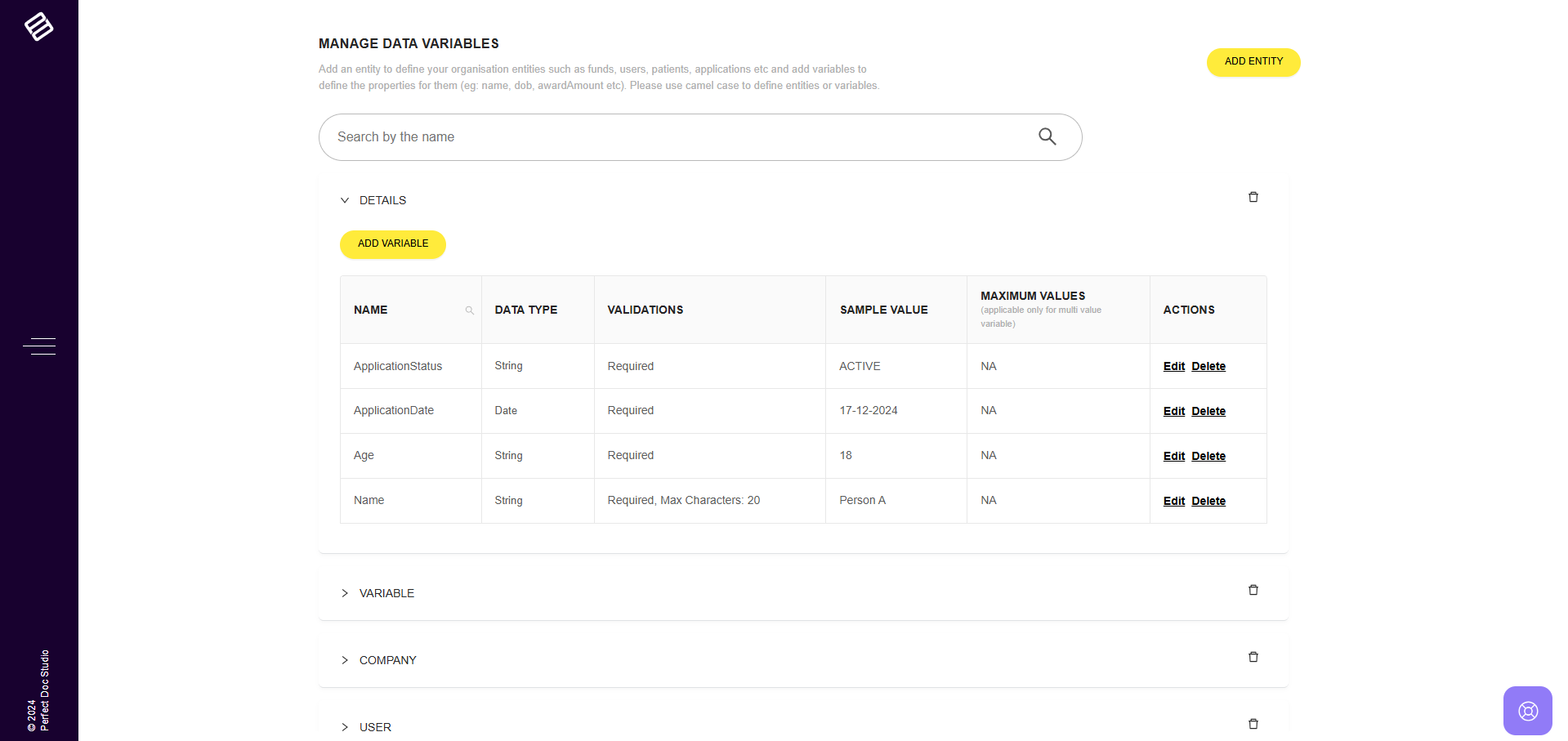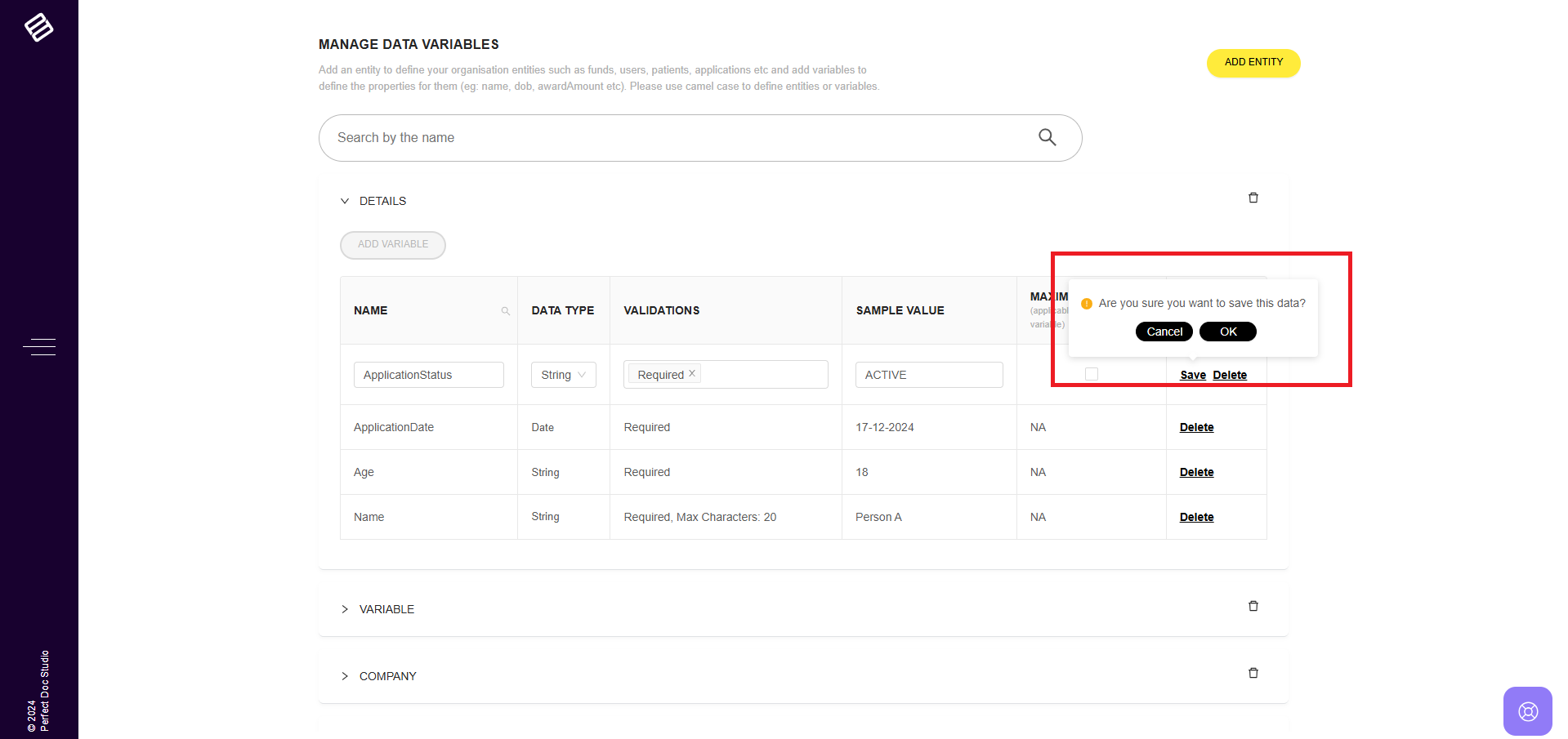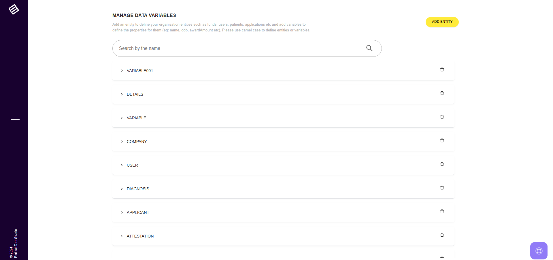 In Perfect Doc Studio, variables are managed at a global level, as demonstrated in the accompanying video. The system features entities that house variables, defining all relevant data variables for your business. This ensures the consistency of ...
