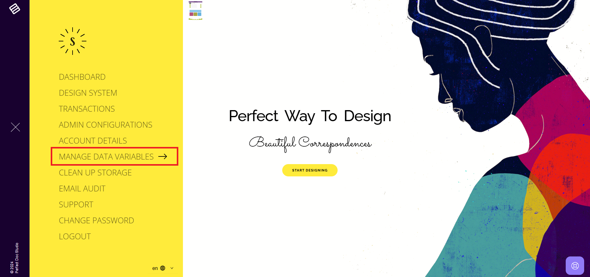 1. On the home screen, select “Manage Data Variables” in the left sidebar.