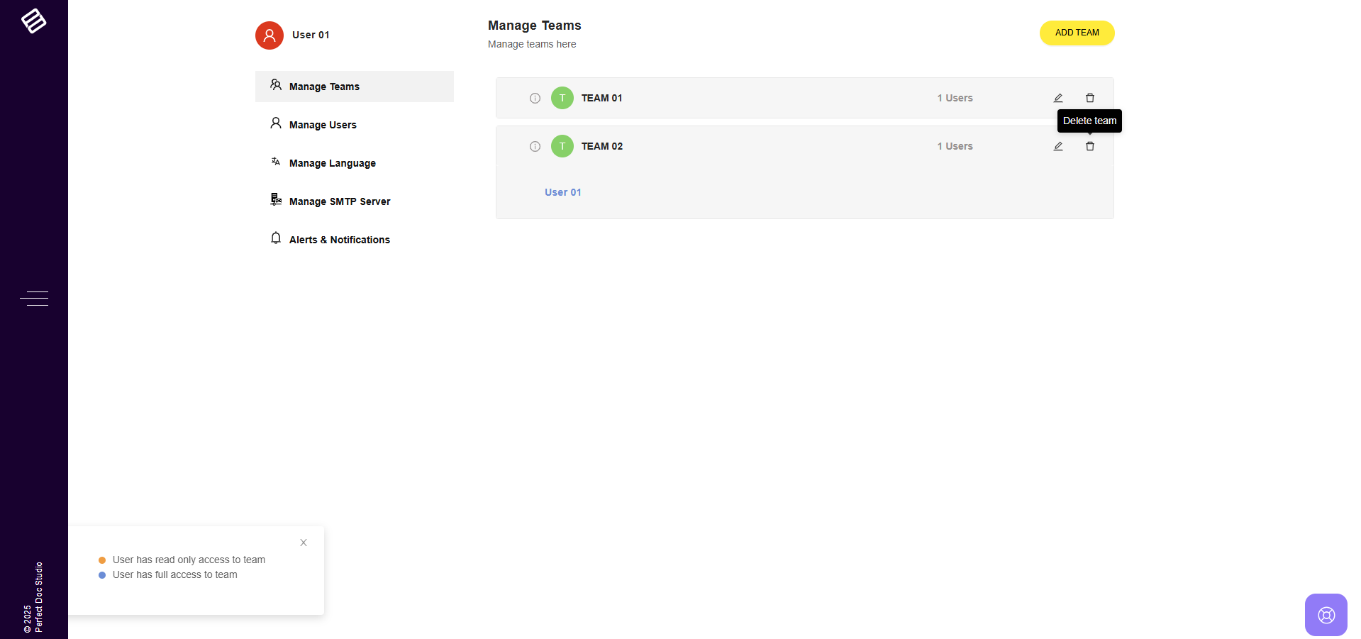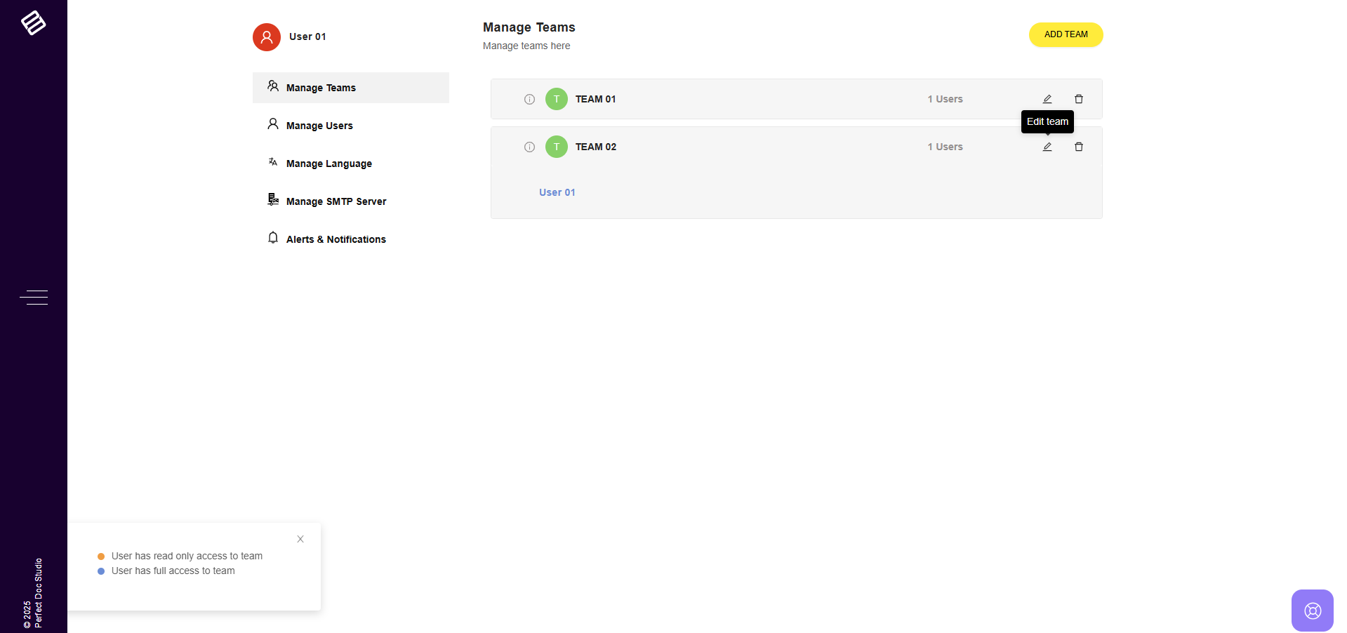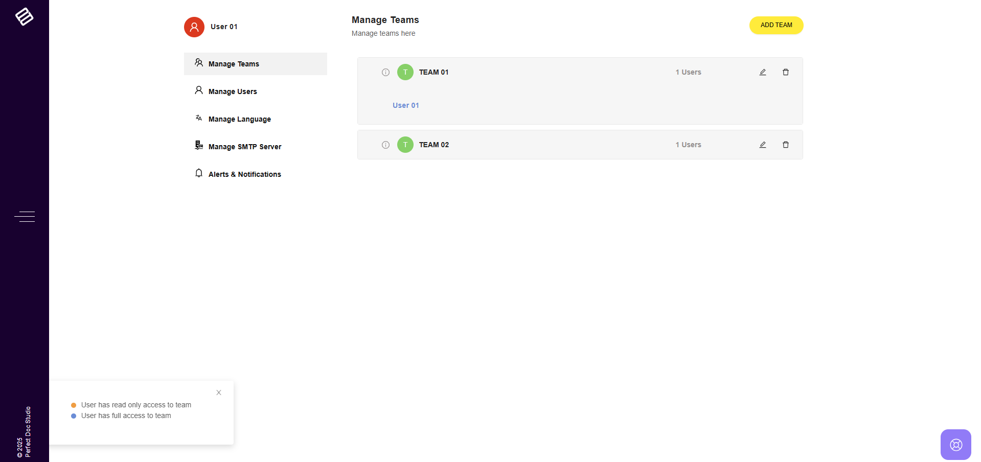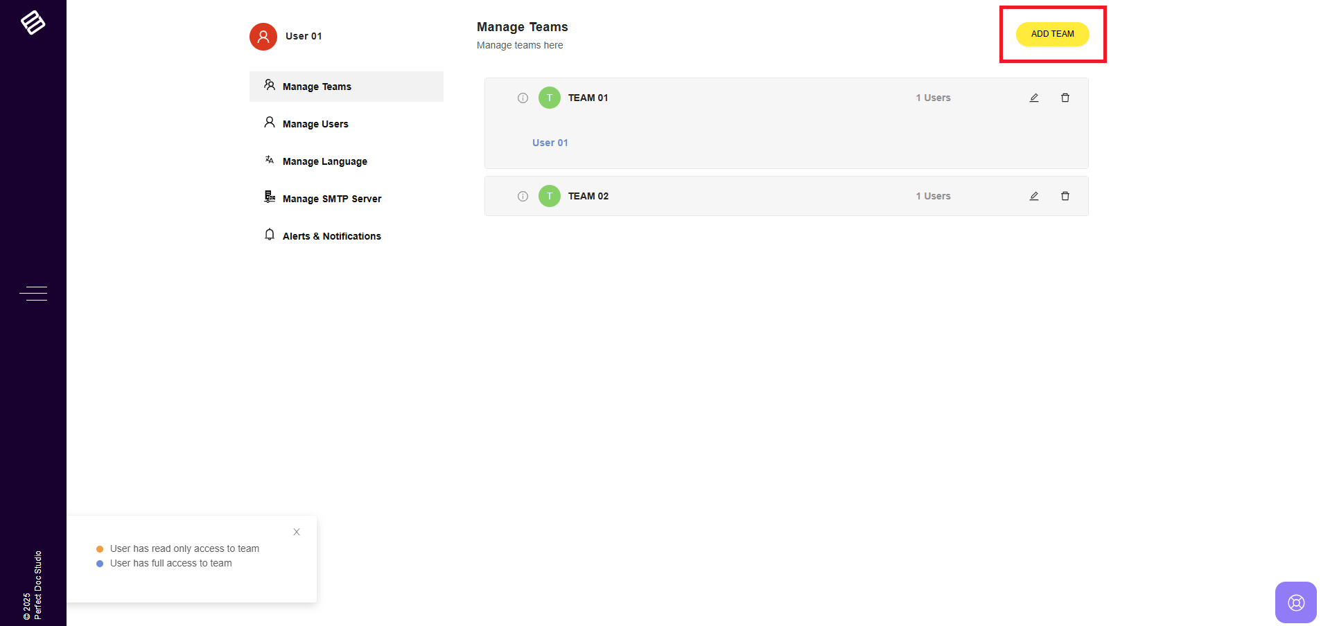 In Perfect Doc Studio, organizations have the flexibility to create multiple teams as needed. This functionality enables better organization and streamlined management of templates. Each template can be assigned to a specific team, ensuring that ...