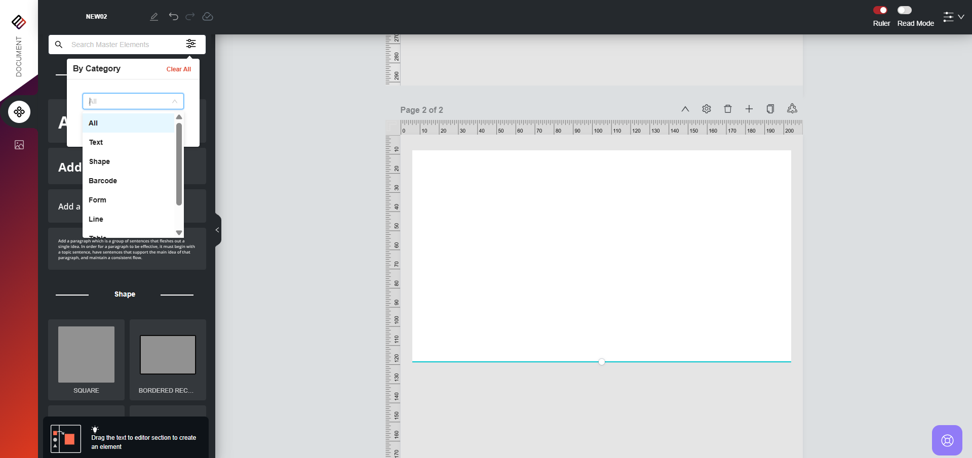 3. Once added, a side menu appears on the left side of the design area with two sections: Master Elements and Uploads
