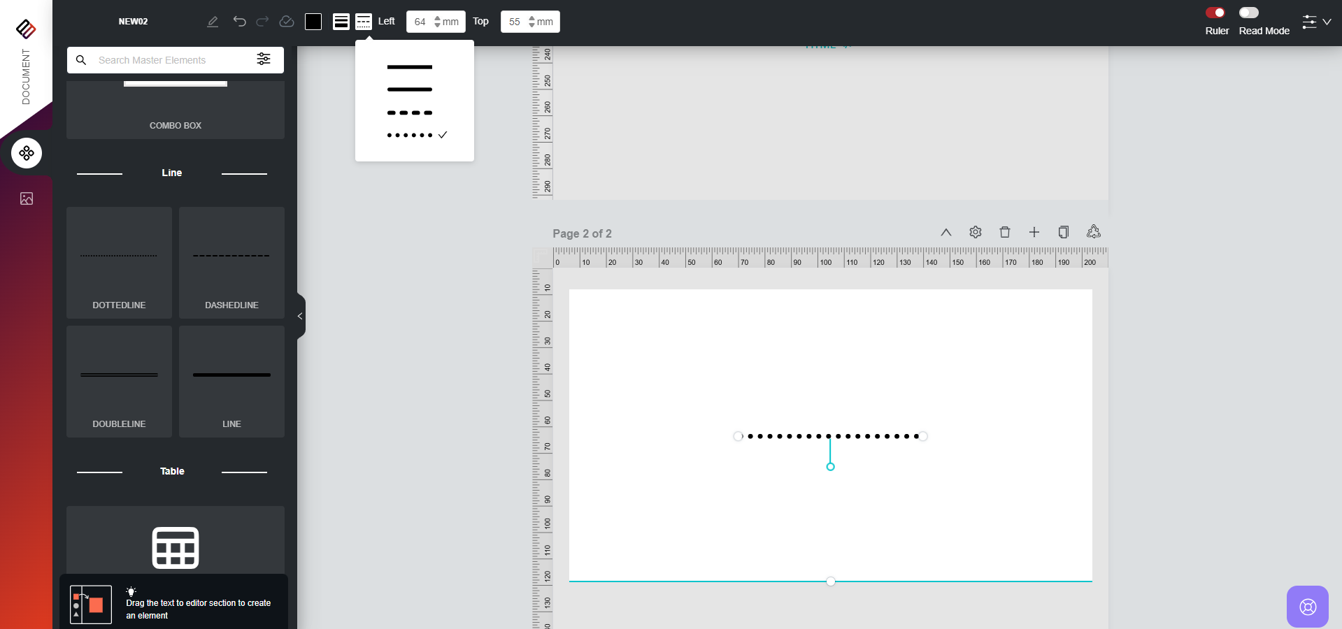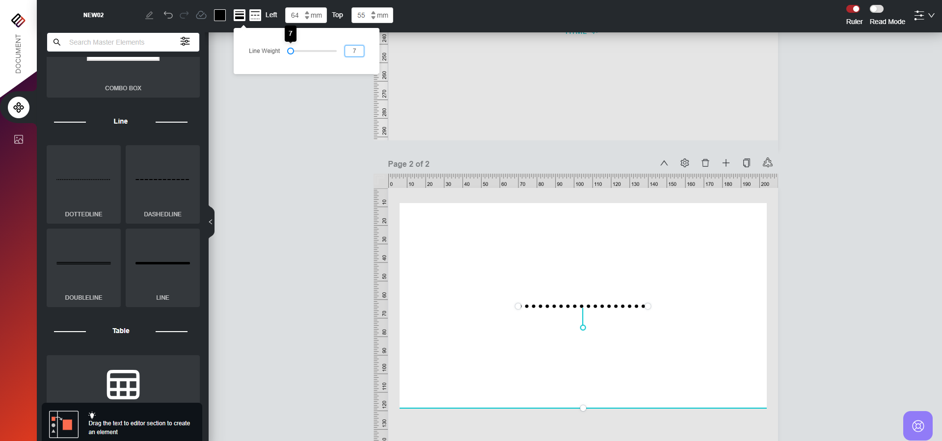 The Line master element in Perfect Doc Studio enables users to add a line to their documents. After dragging and dropping the line, users can easily adjust its weight by selecting options in the top bar.