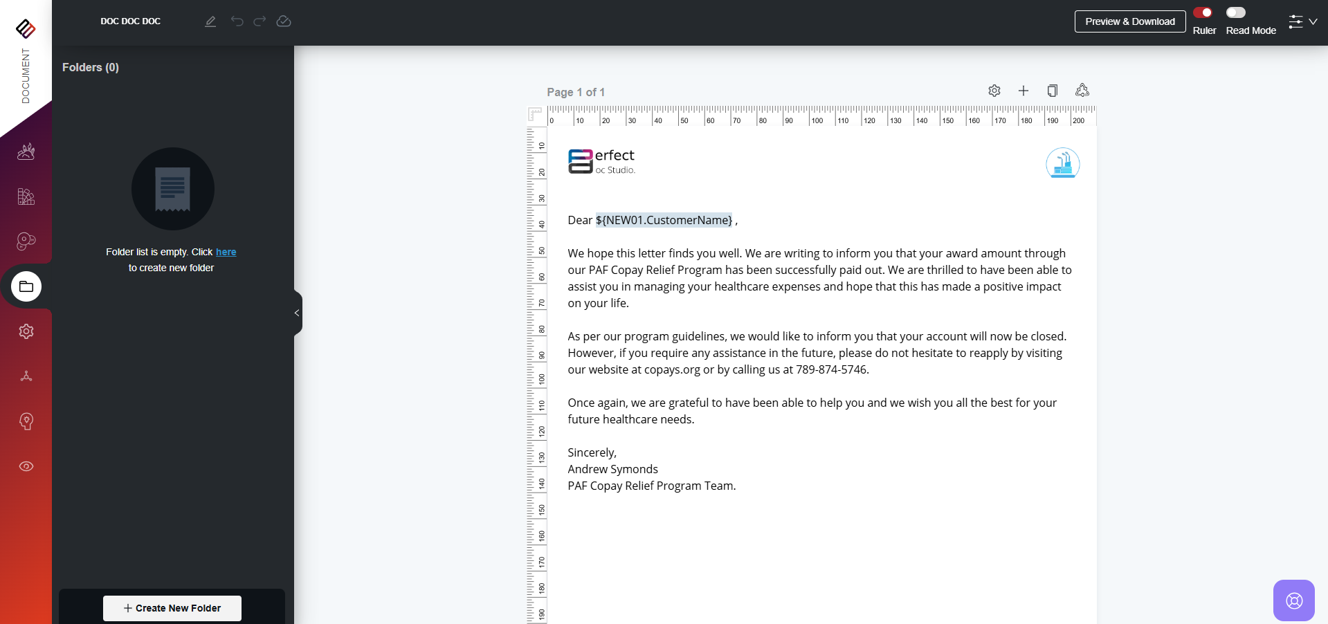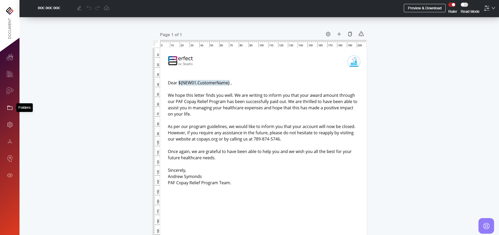 Folders serve as a space where each team / user can store their Document designs in distinct folders and arrange them systematically.