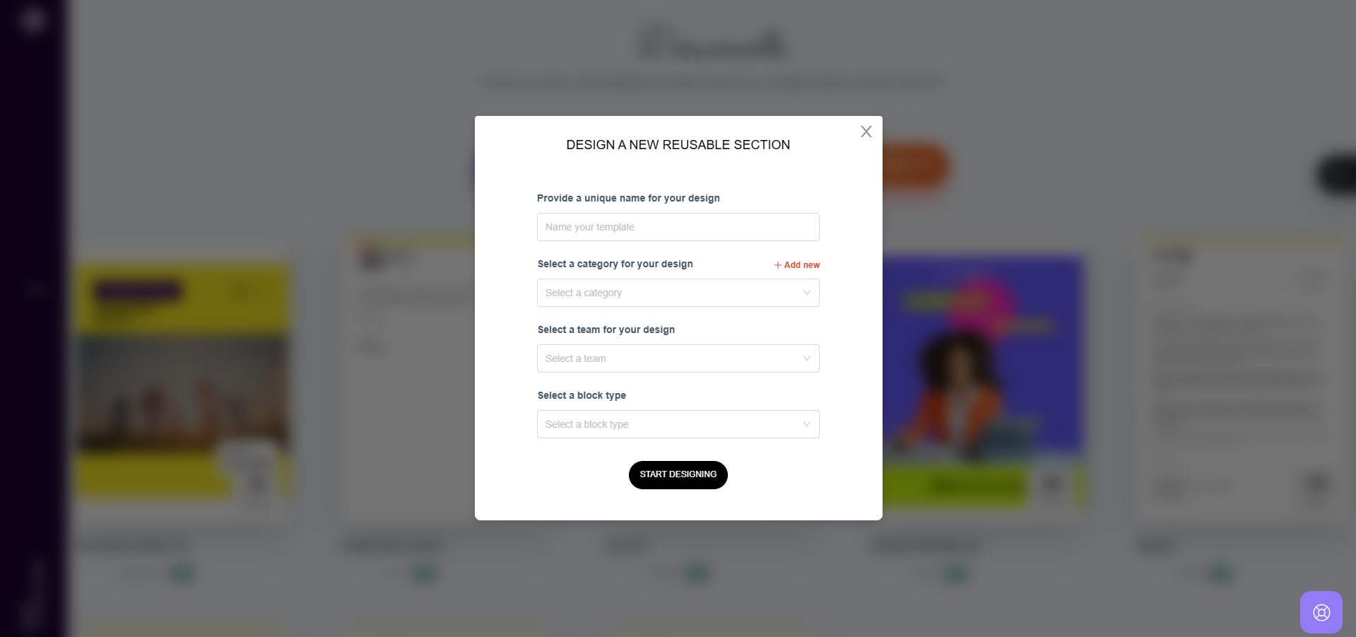 5. There is also a dedicated option to choose the Block Type for design, which can be a Header, Footer, or Content Block. Select the appropriate option and click Start Designing.