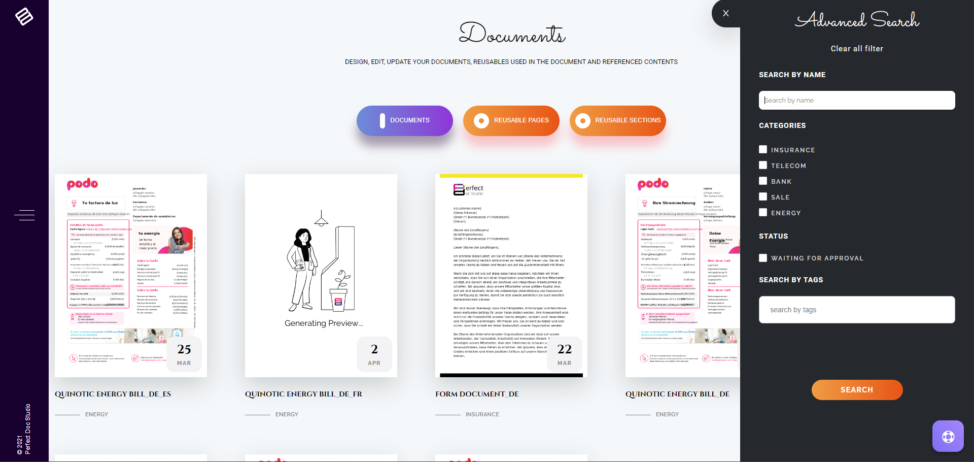 5. From the sidebar, you can search for the document templates based on name, categories, tags, and status of the document.
