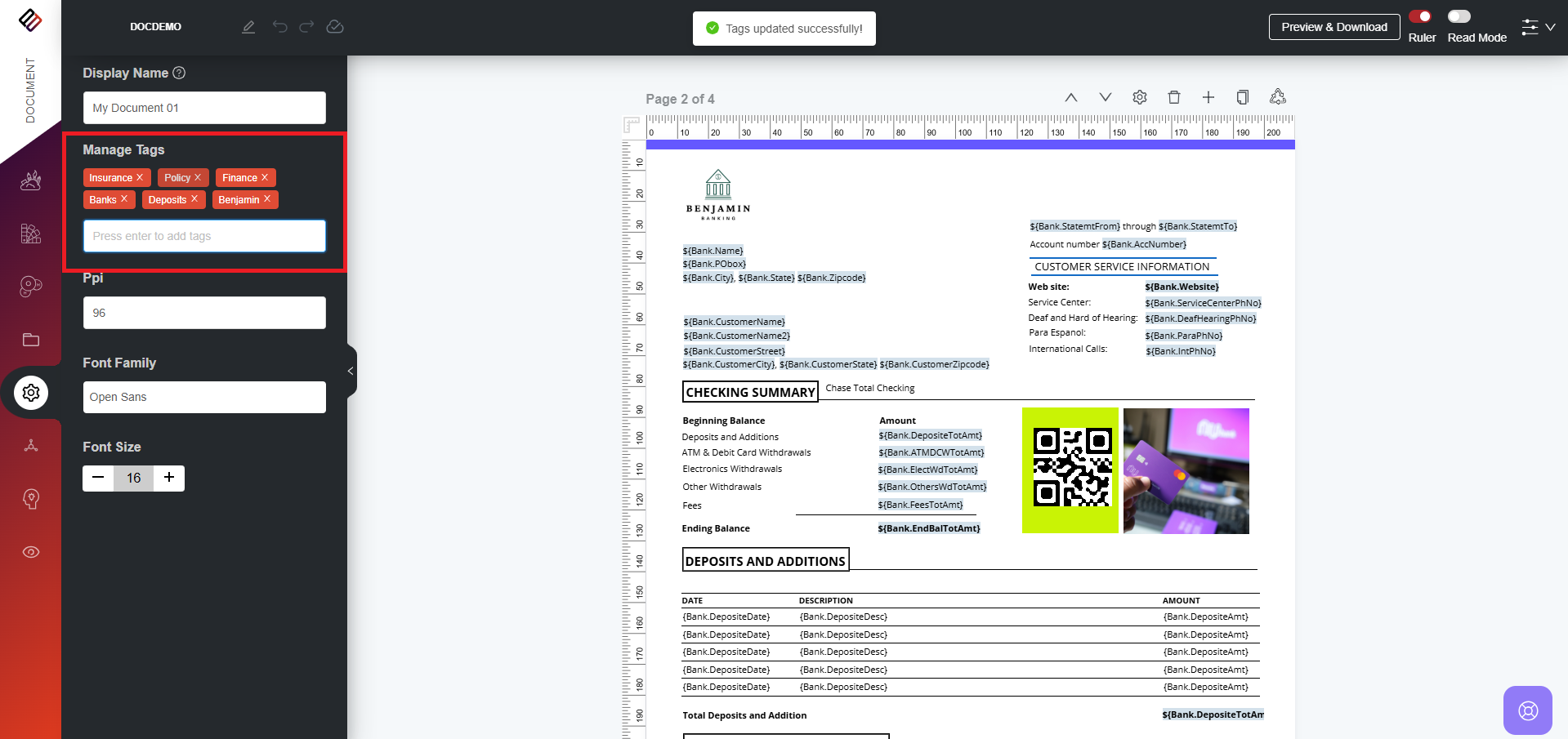 3. In the Manage Tags section, assign tags to your document for easier identification. Tags can be helpful when performing an advanced search, making it quicker to locate specific documents.
