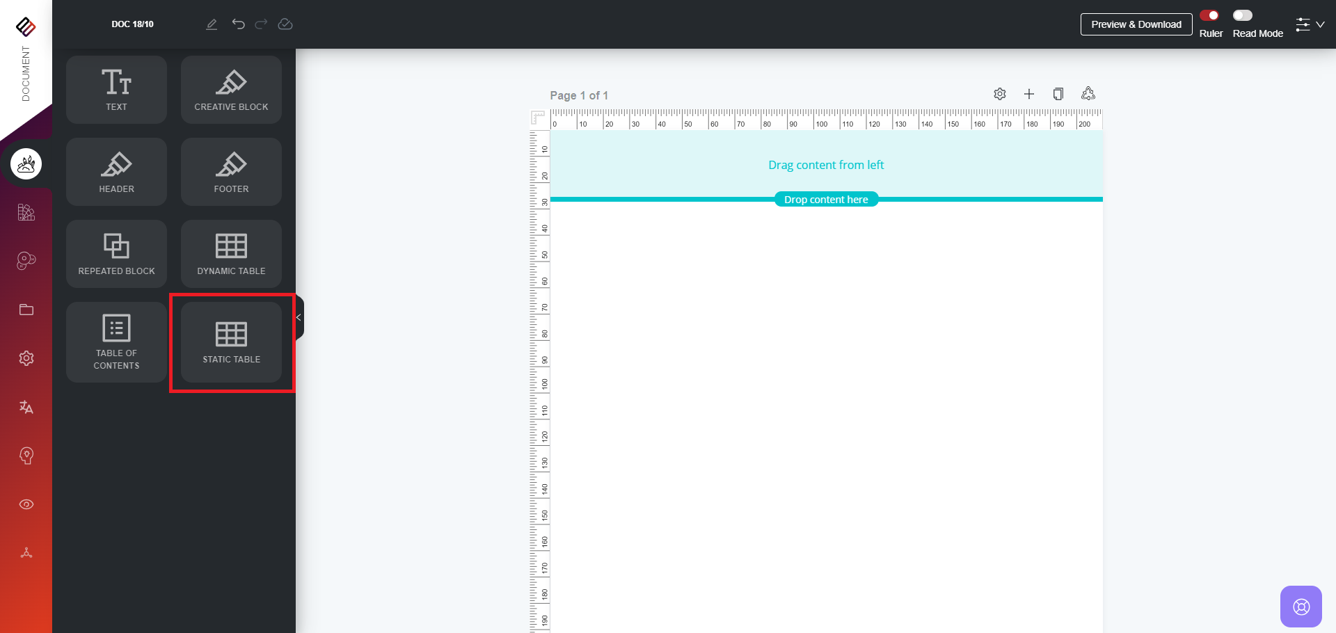 1. Locate the Static Table Option: On the design page, find the "Static Table" option on the left-hand side of the interface.