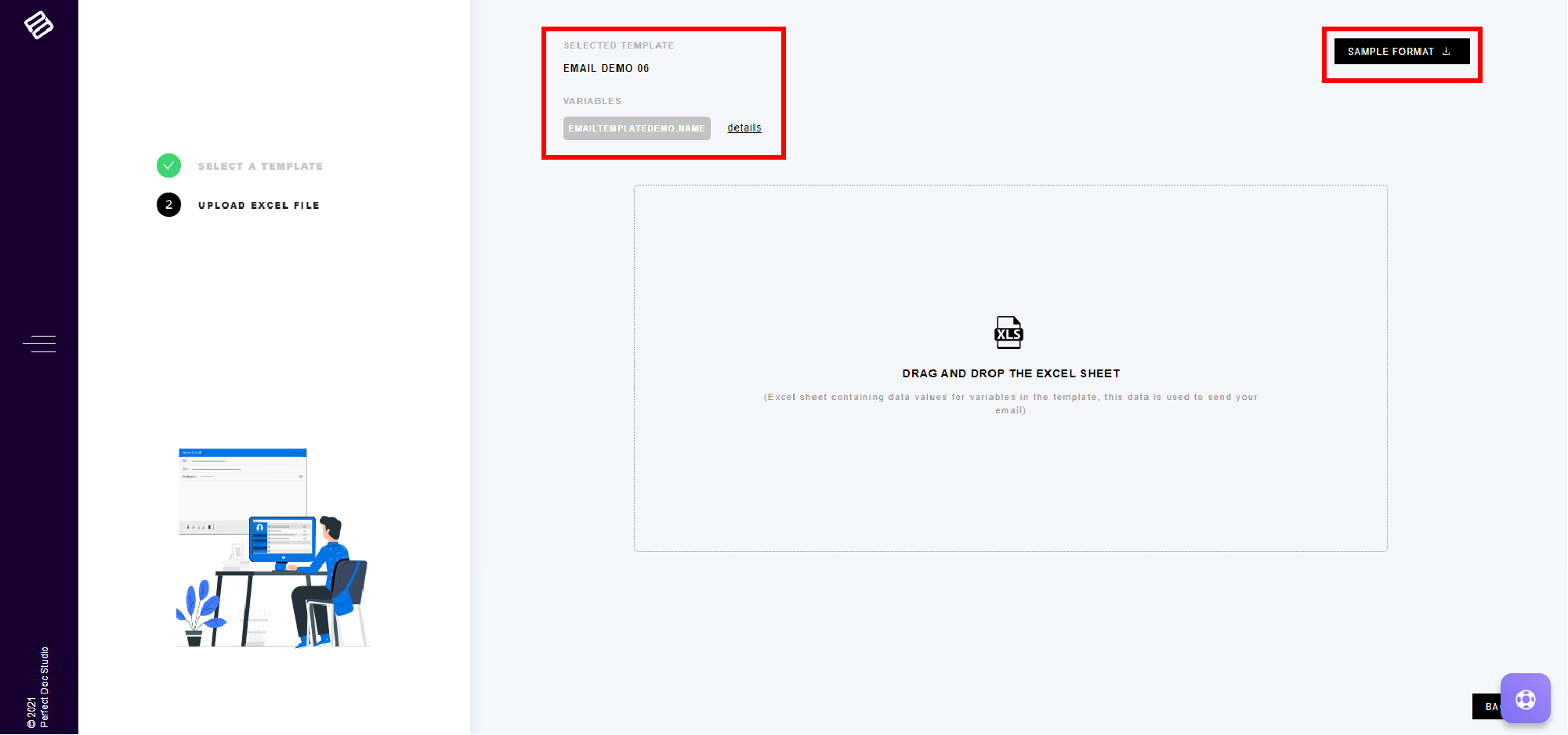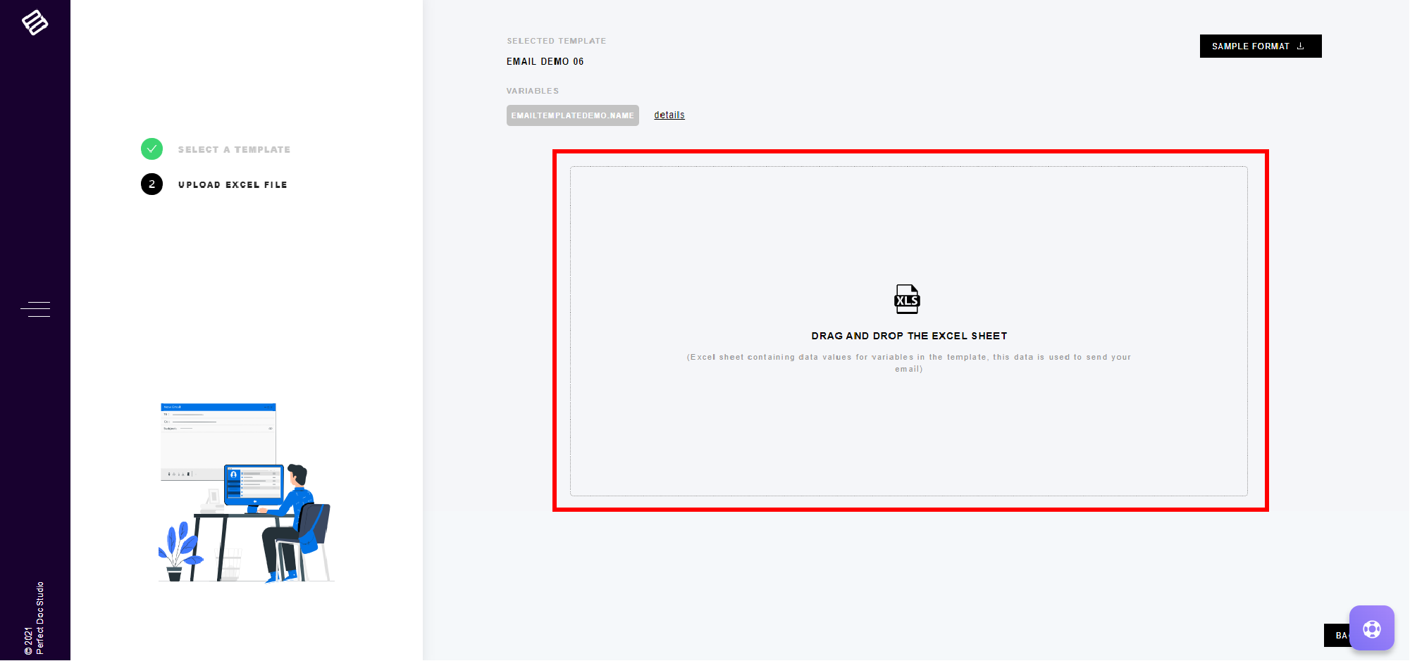 4. Upon selecting the template, a window will appear displaying the details of the selected template and the available variables within the chosen template. Navigate to the upper right corner of the page, and click on the "Sample Format" option to download the Excel sheet for entering data corresponding to the variables embedded in the template.