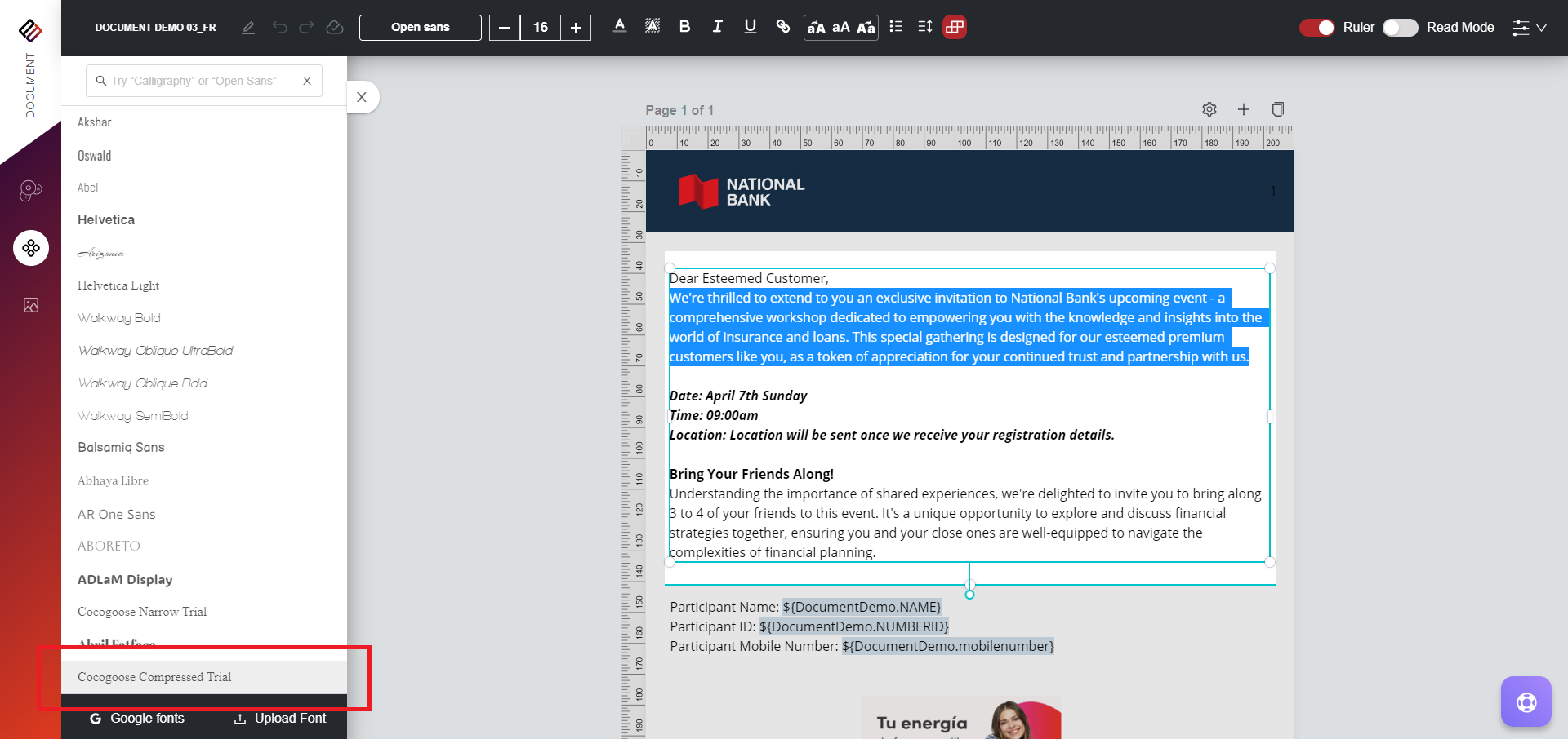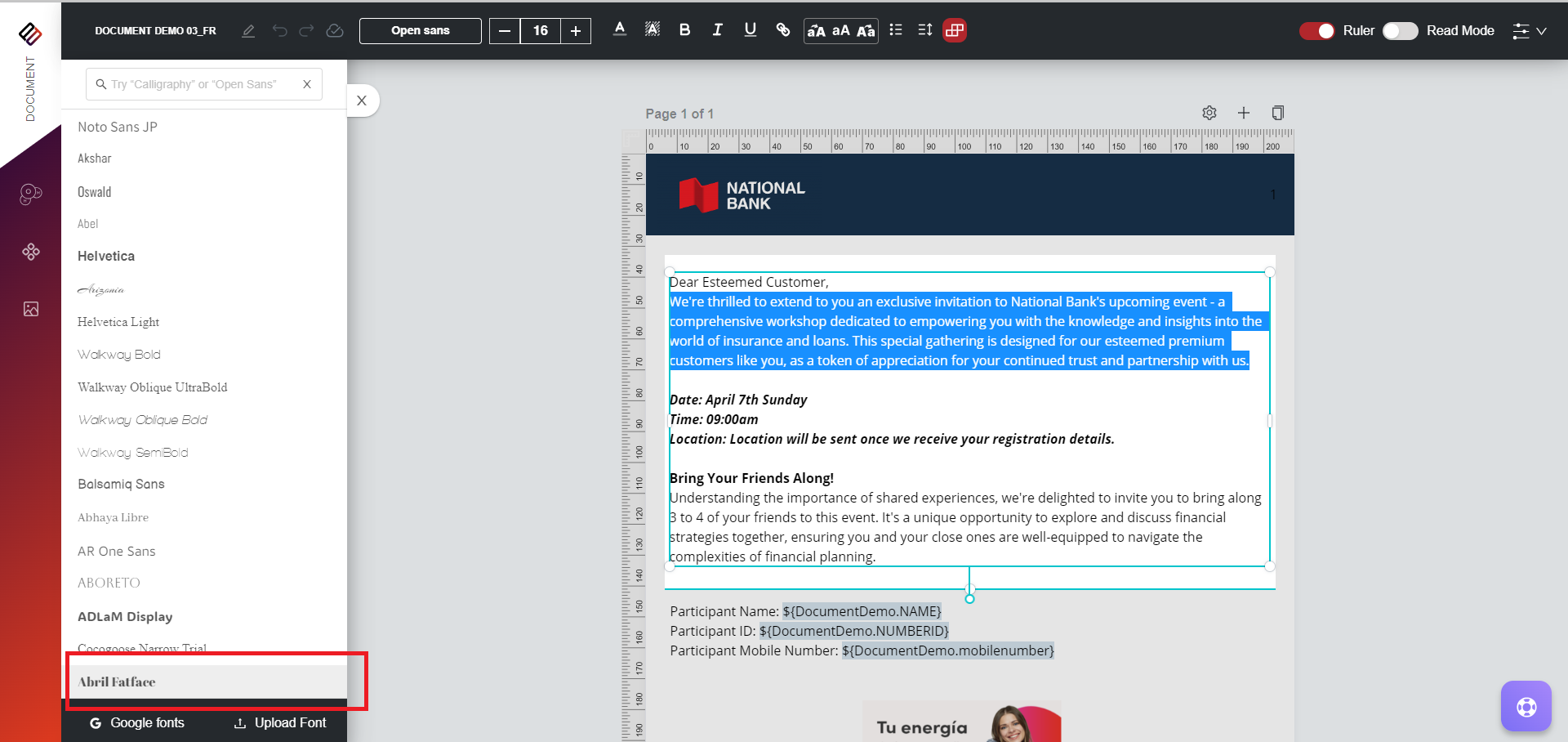 Save and Use: Once you've dropped the desired fonts, click "Save." The uploaded fonts will now be available for use within PerfectDoc Studio.